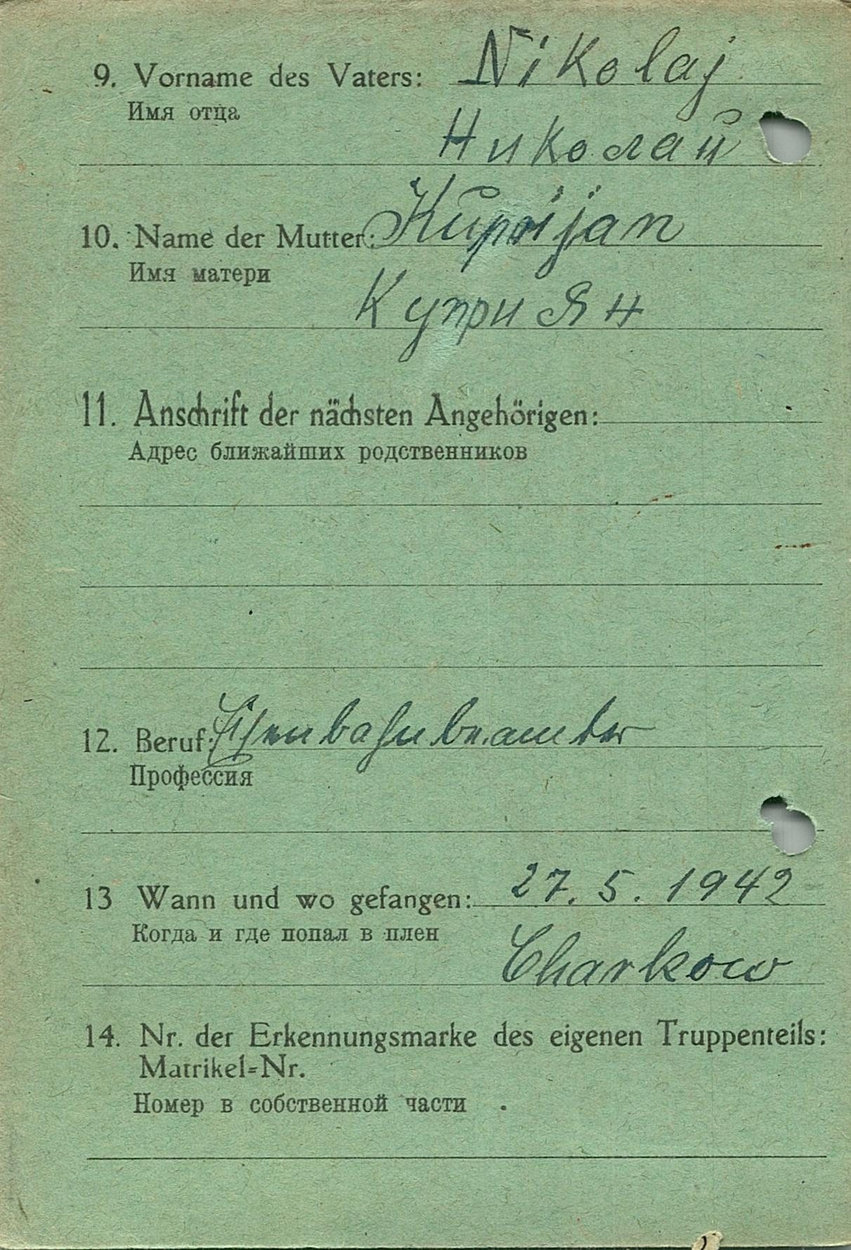 Военнопленные, трофейные карточки. Киевская обл.