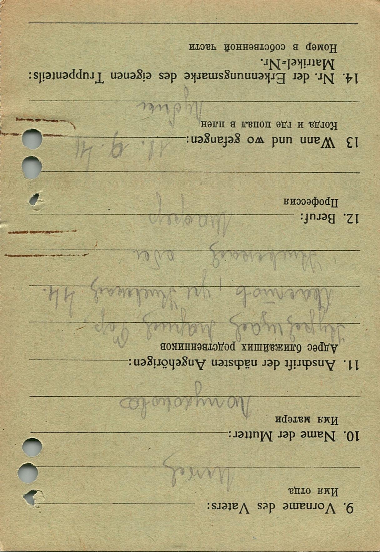 Военнопленные, трофейные карточки. Киевская обл.
