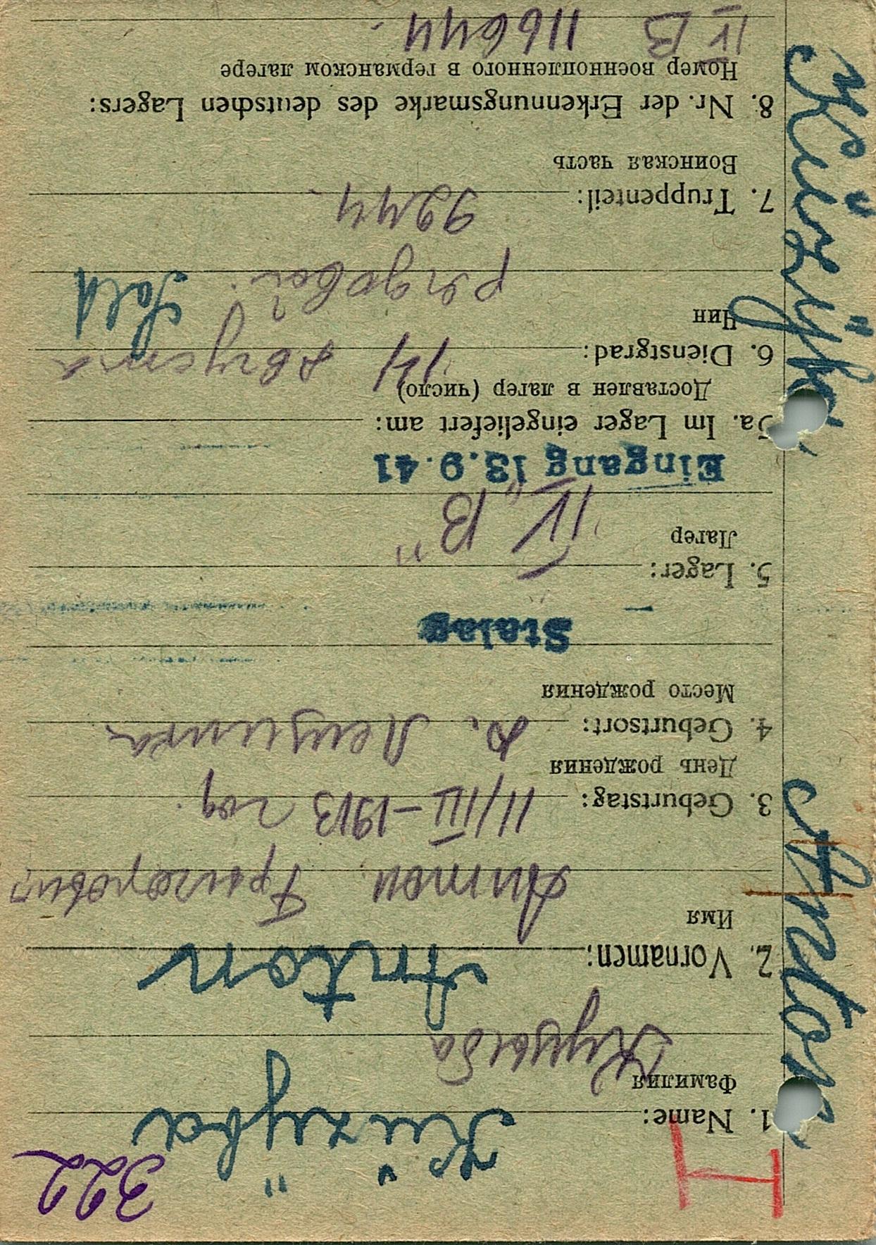 Военнопленные, трофейные карточки. Киевская обл.