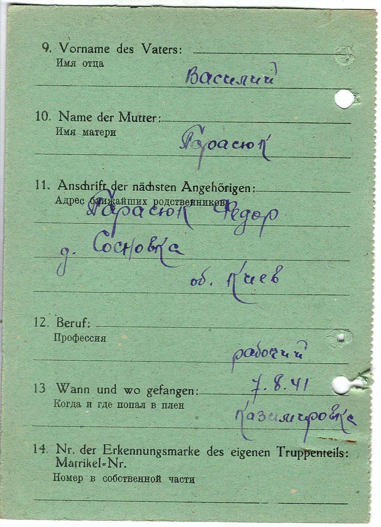 Военнопленные, трофейные карточки. Киевская обл.