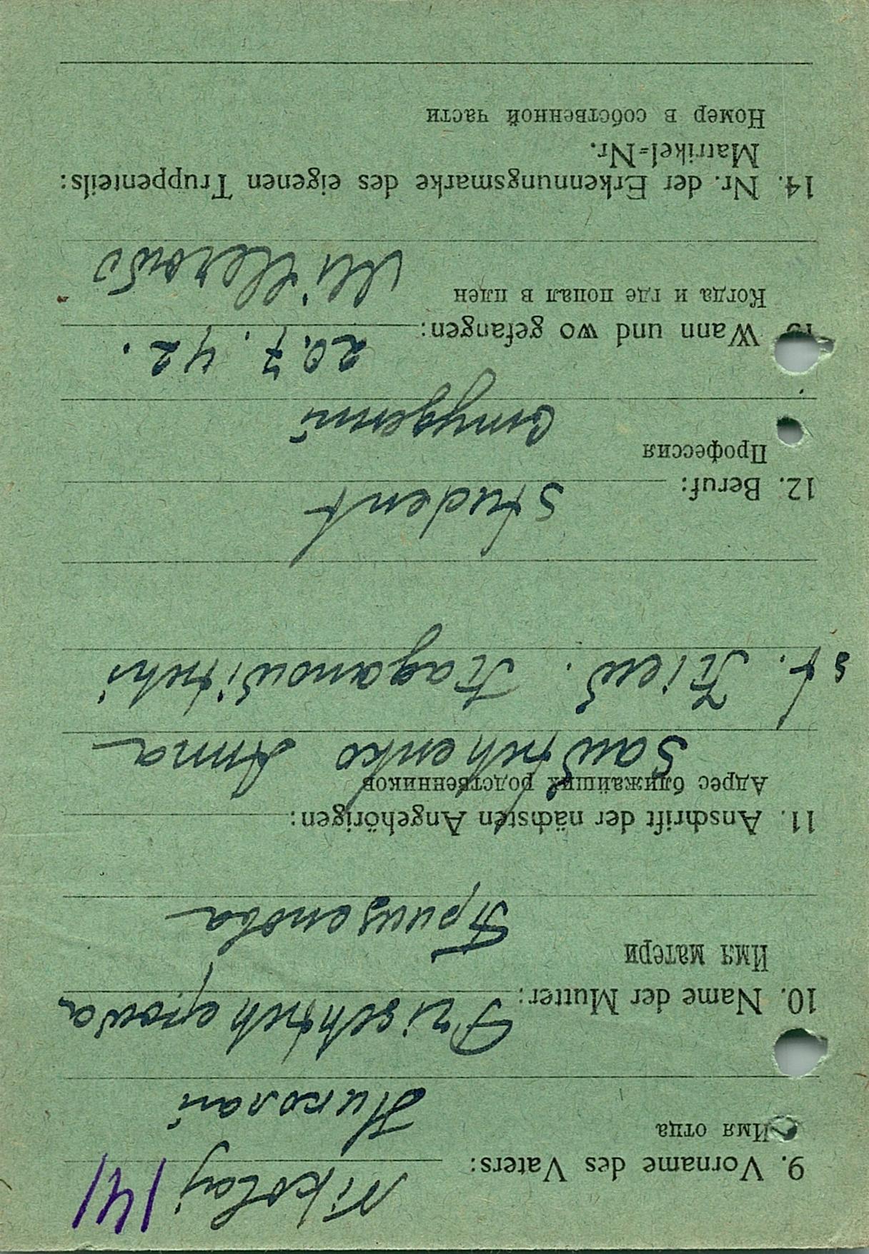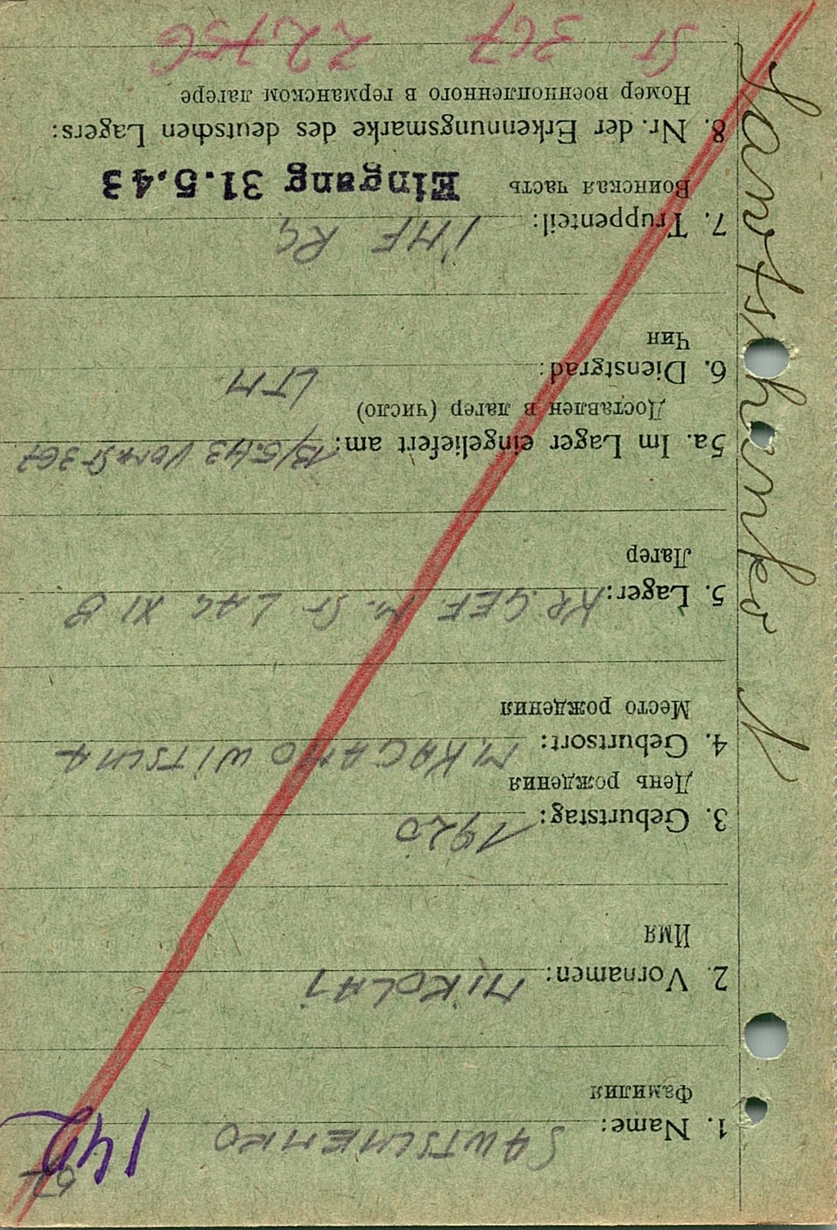 Военнопленные, трофейные карточки. Киевская обл.