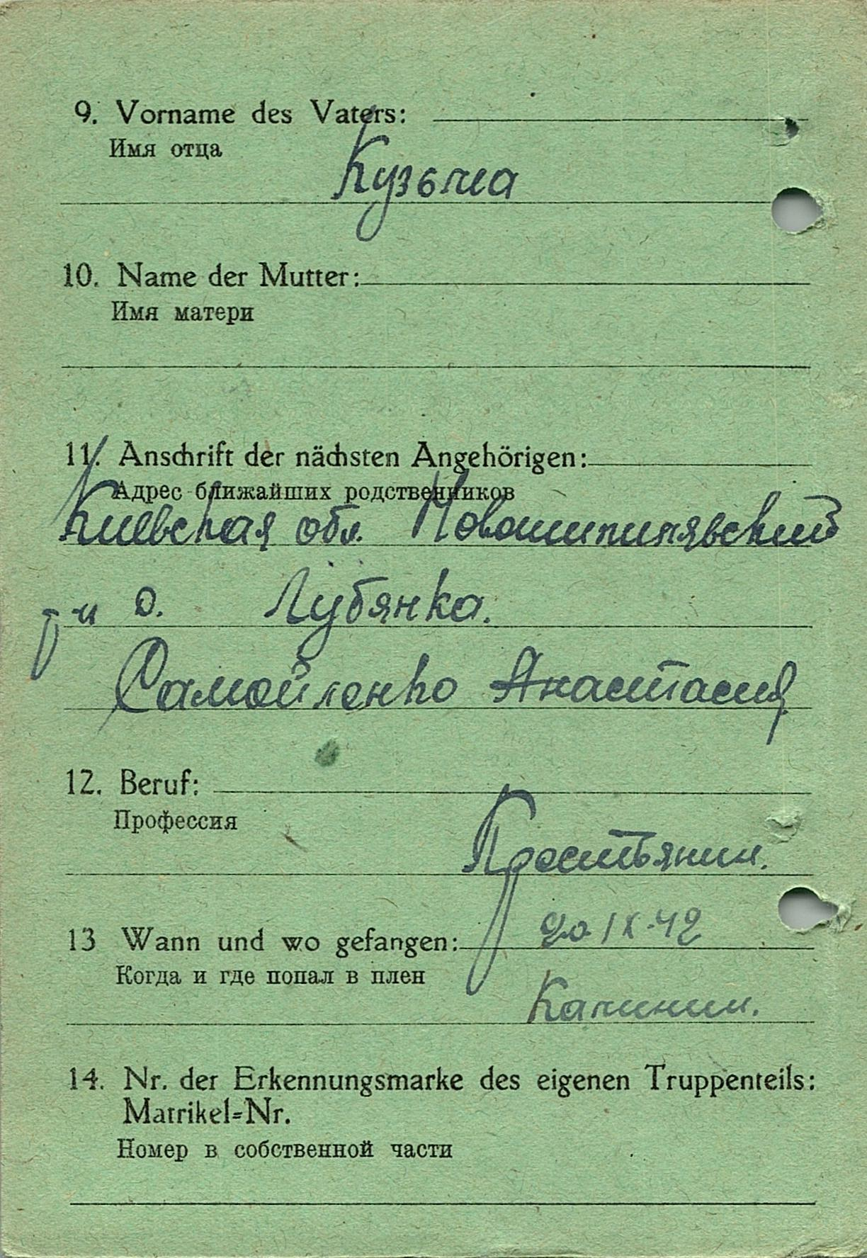 Военнопленные, трофейные карточки. Киевская обл.