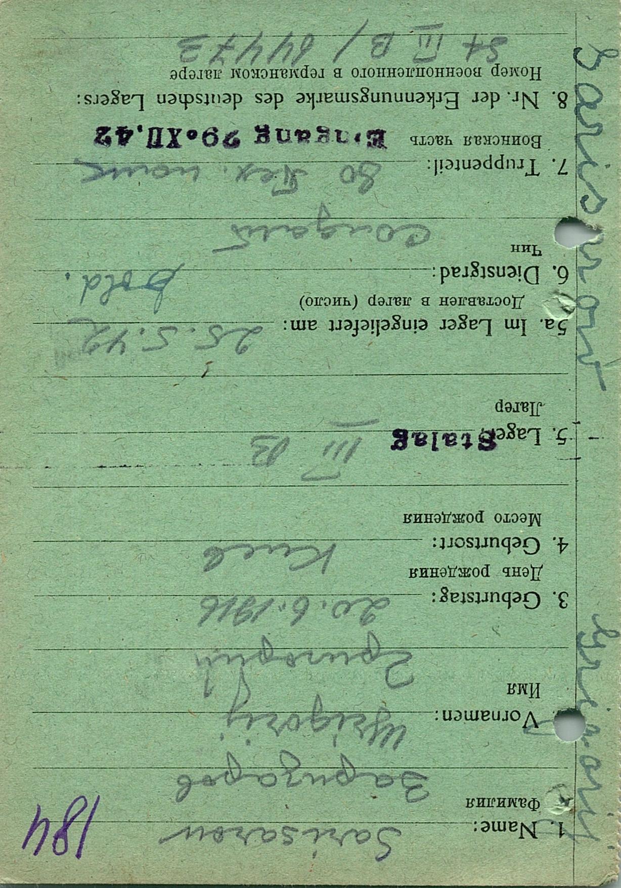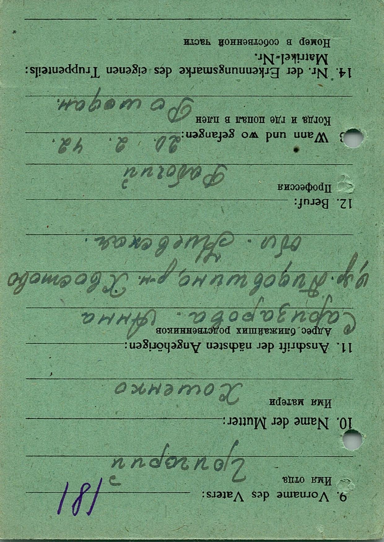 Военнопленные, трофейные карточки. Киевская обл.
