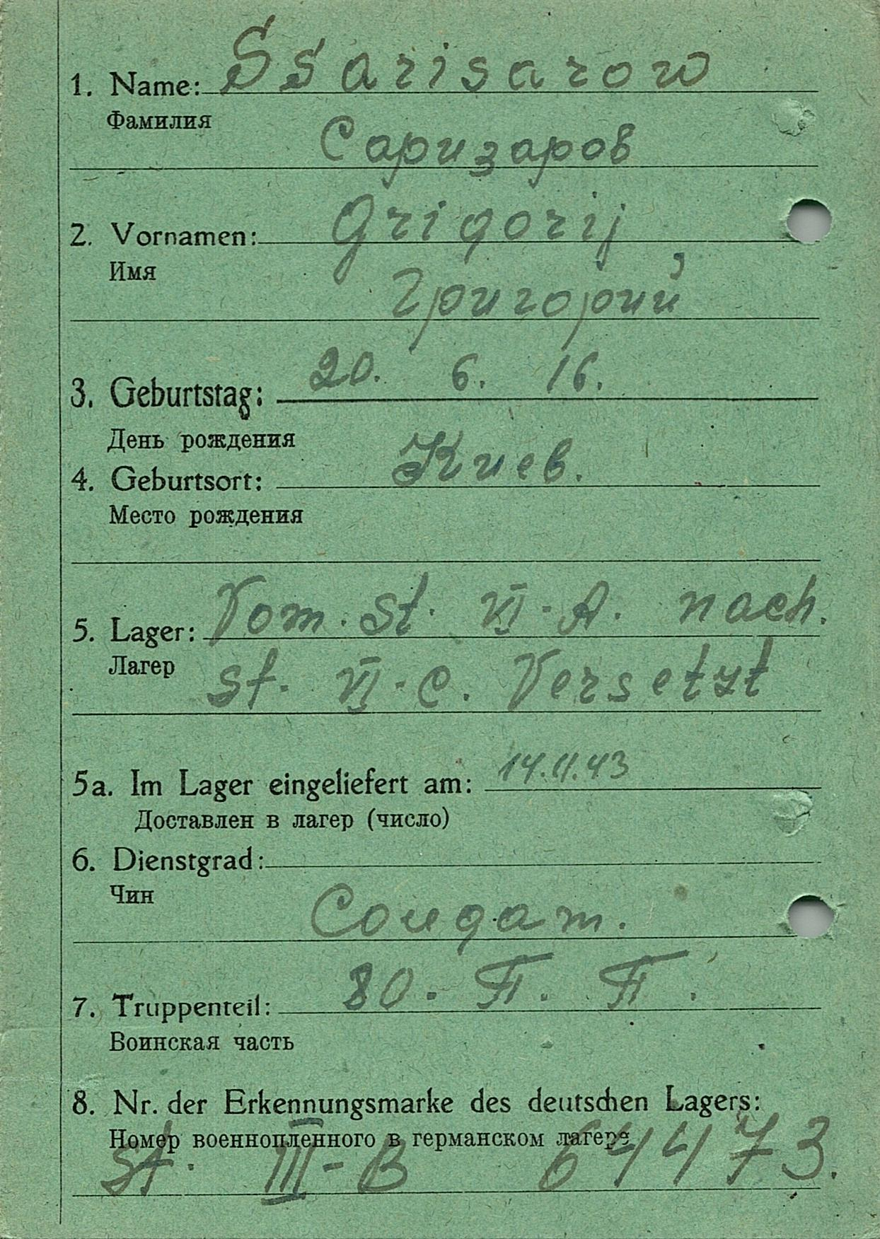 Военнопленные, трофейные карточки. Киевская обл.