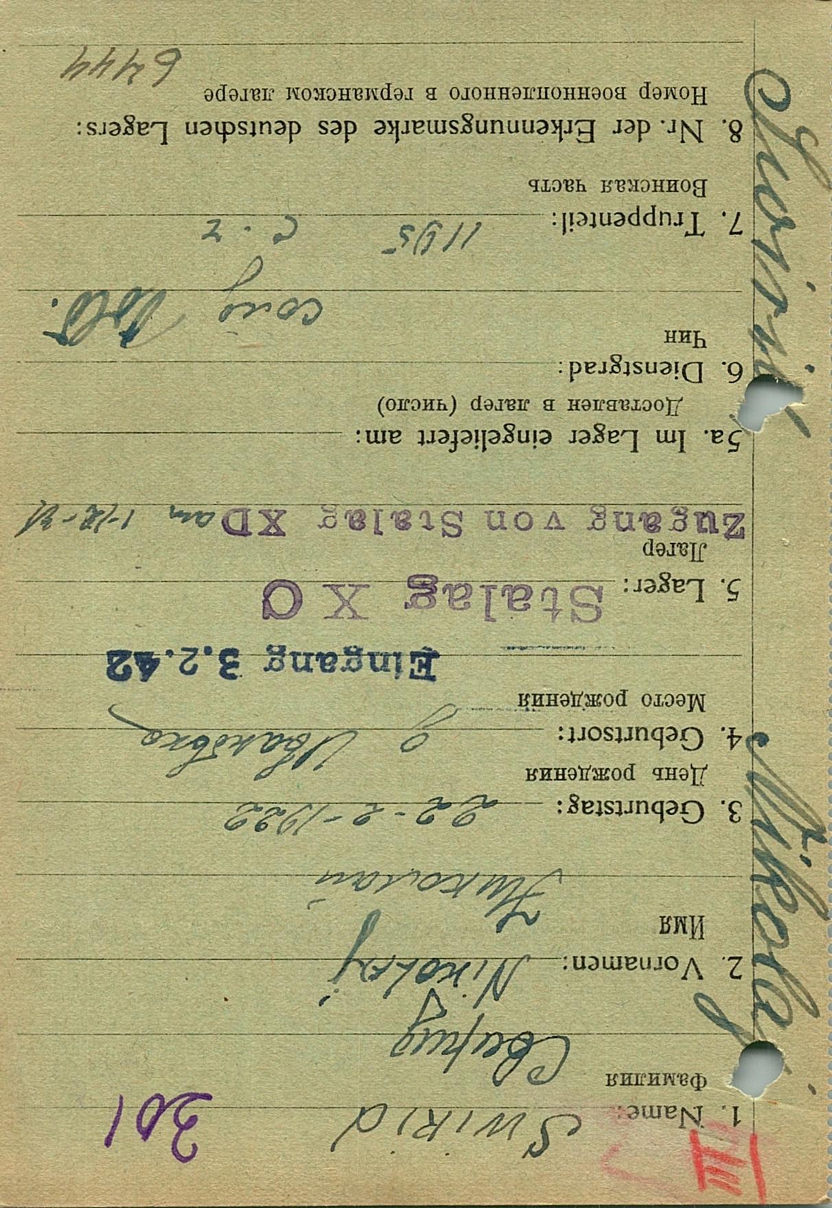 Военнопленные, трофейные карточки. Киевская обл.