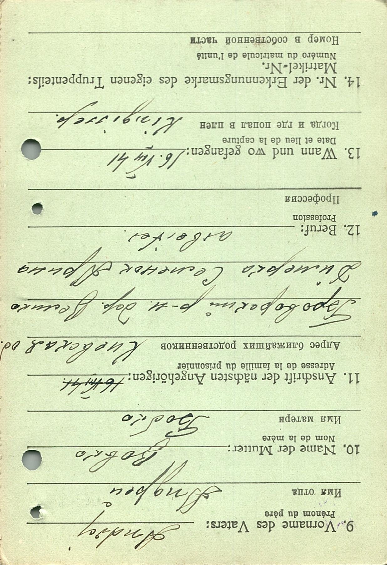 Военнопленные, трофейные карточки. Киевская обл.