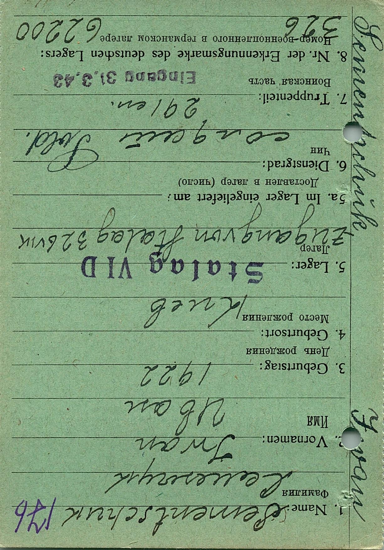 Военнопленные, трофейные карточки. Киевская обл.