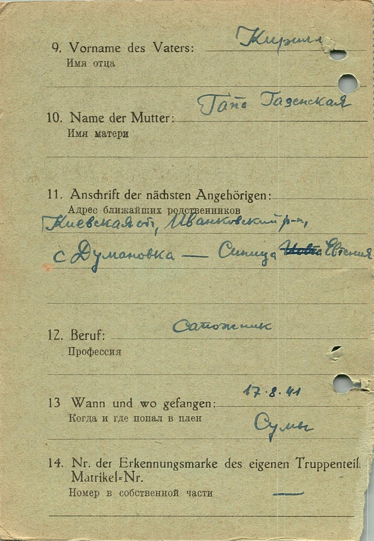 Военнопленные, трофейные карточки. Киевская обл.