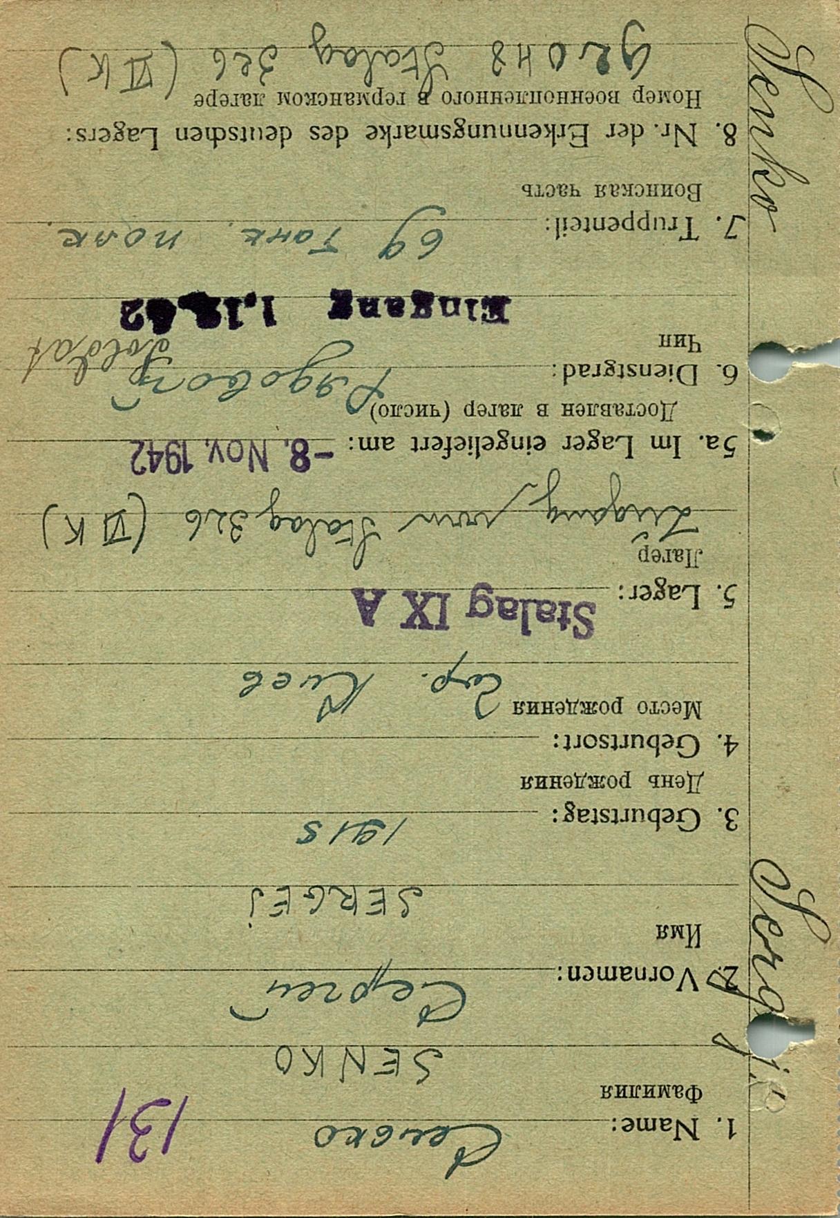Военнопленные, трофейные карточки. Киевская обл.
