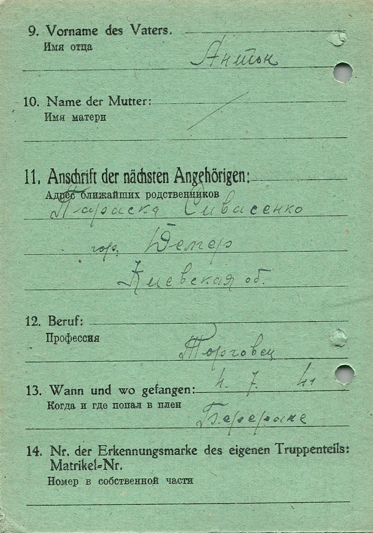 Военнопленные, трофейные карточки. Киевская обл.