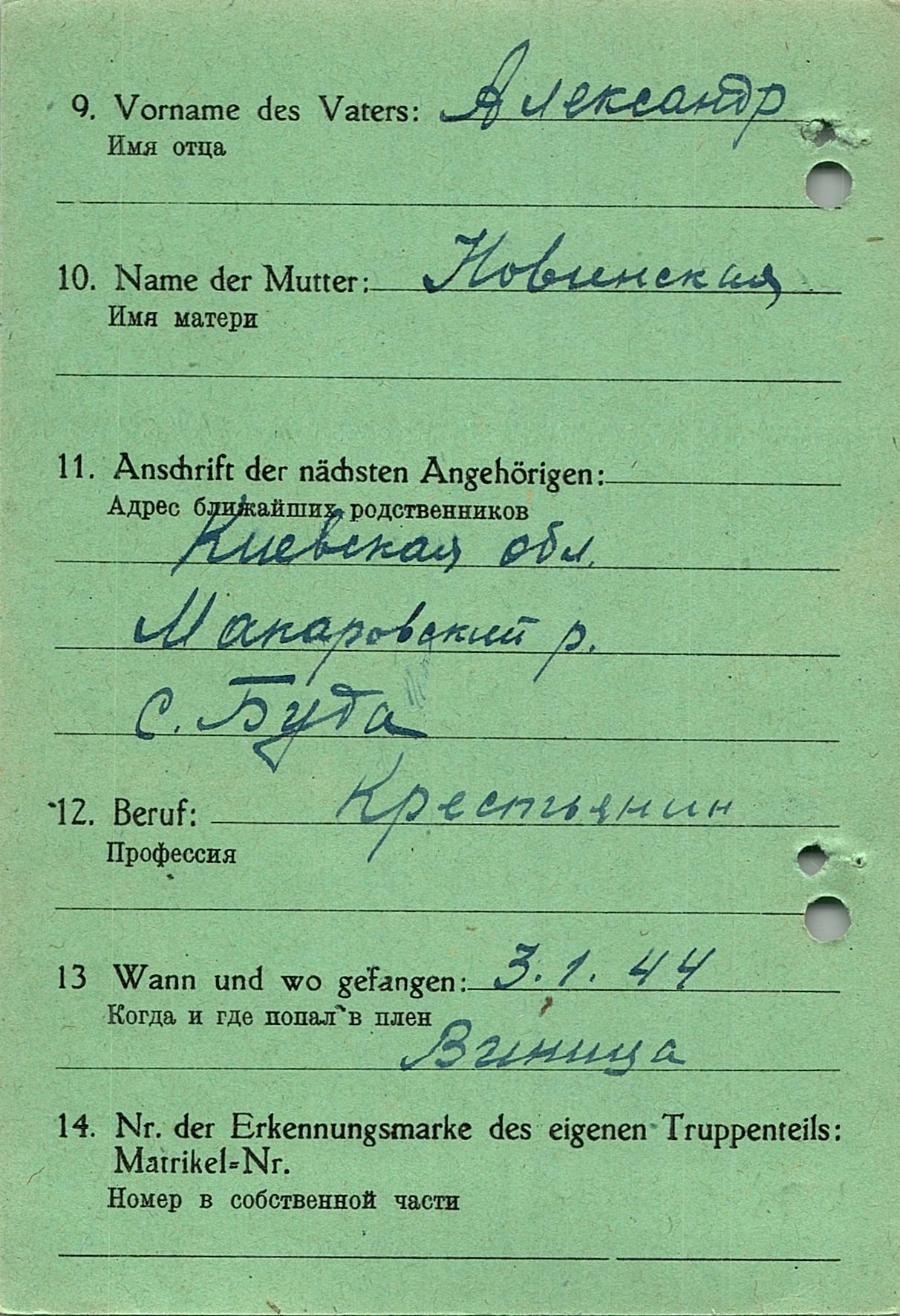 Военнопленные, трофейные карточки. Киевская обл.