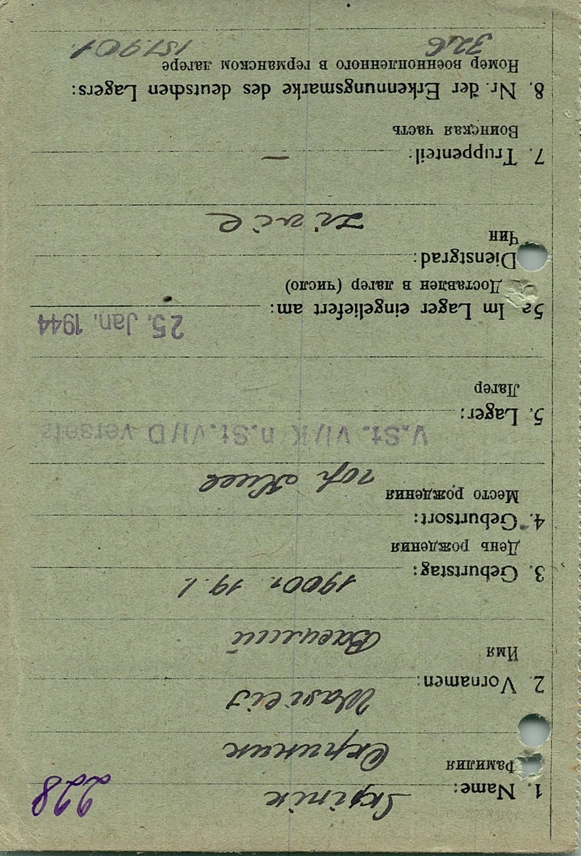 Военнопленные, трофейные карточки. Киевская обл.