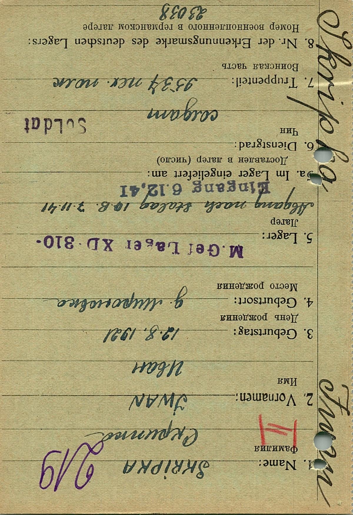 Военнопленные, трофейные карточки. Киевская обл.