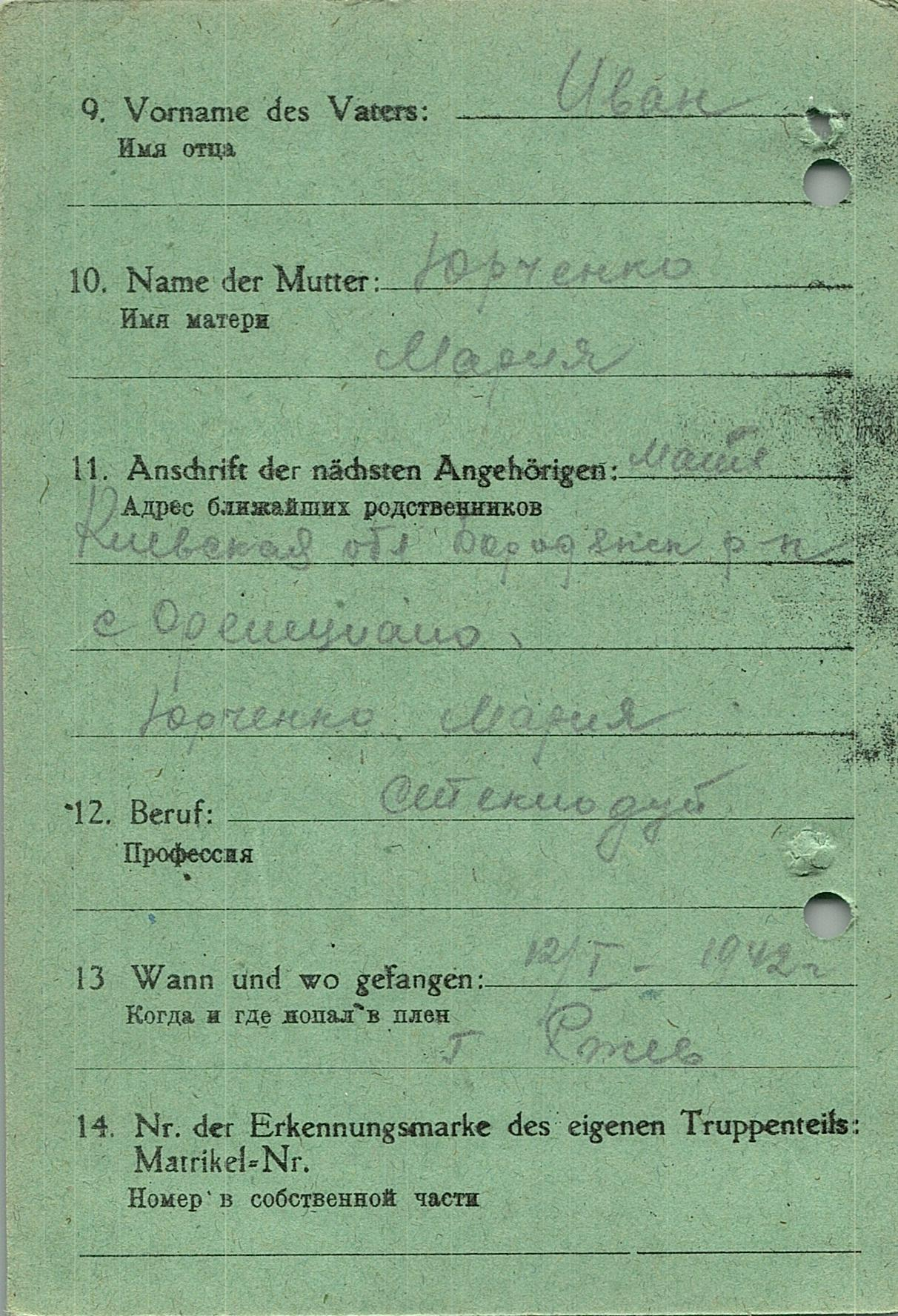 Военнопленные, трофейные карточки. Киевская обл.
