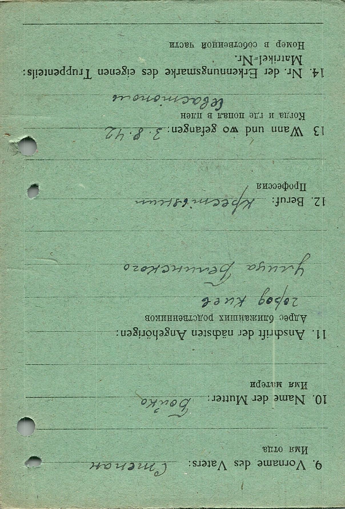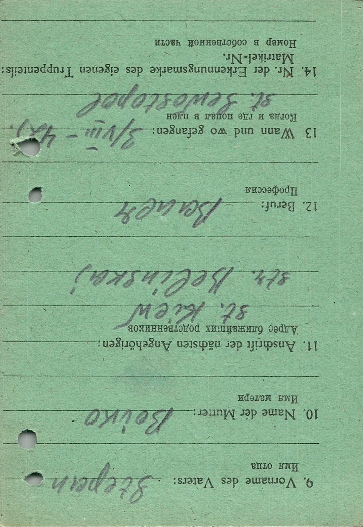 Военнопленные, трофейные карточки. Киевская обл.