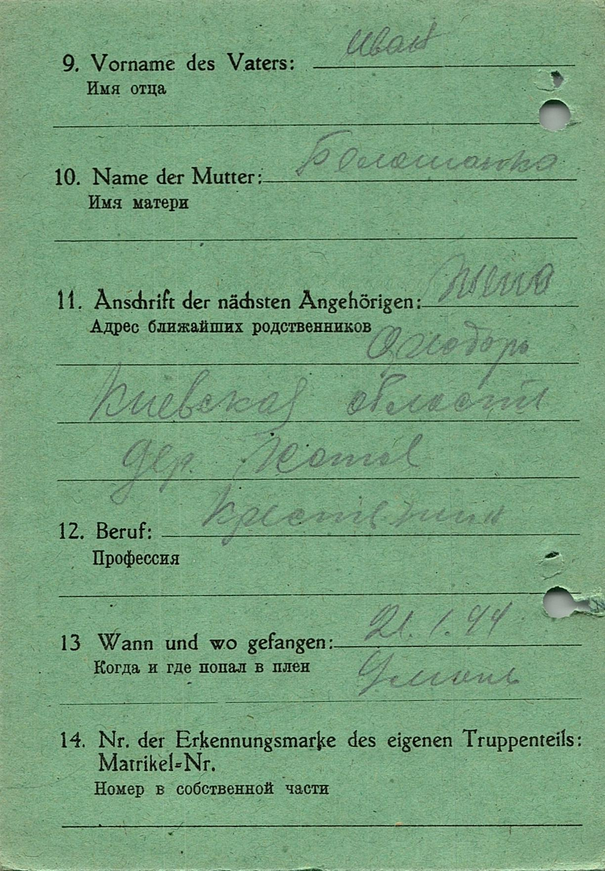 Военнопленные, трофейные карточки. Киевская обл.