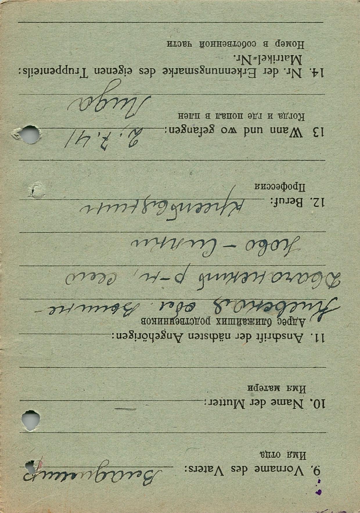 Военнопленные, трофейные карточки. Киевская обл.