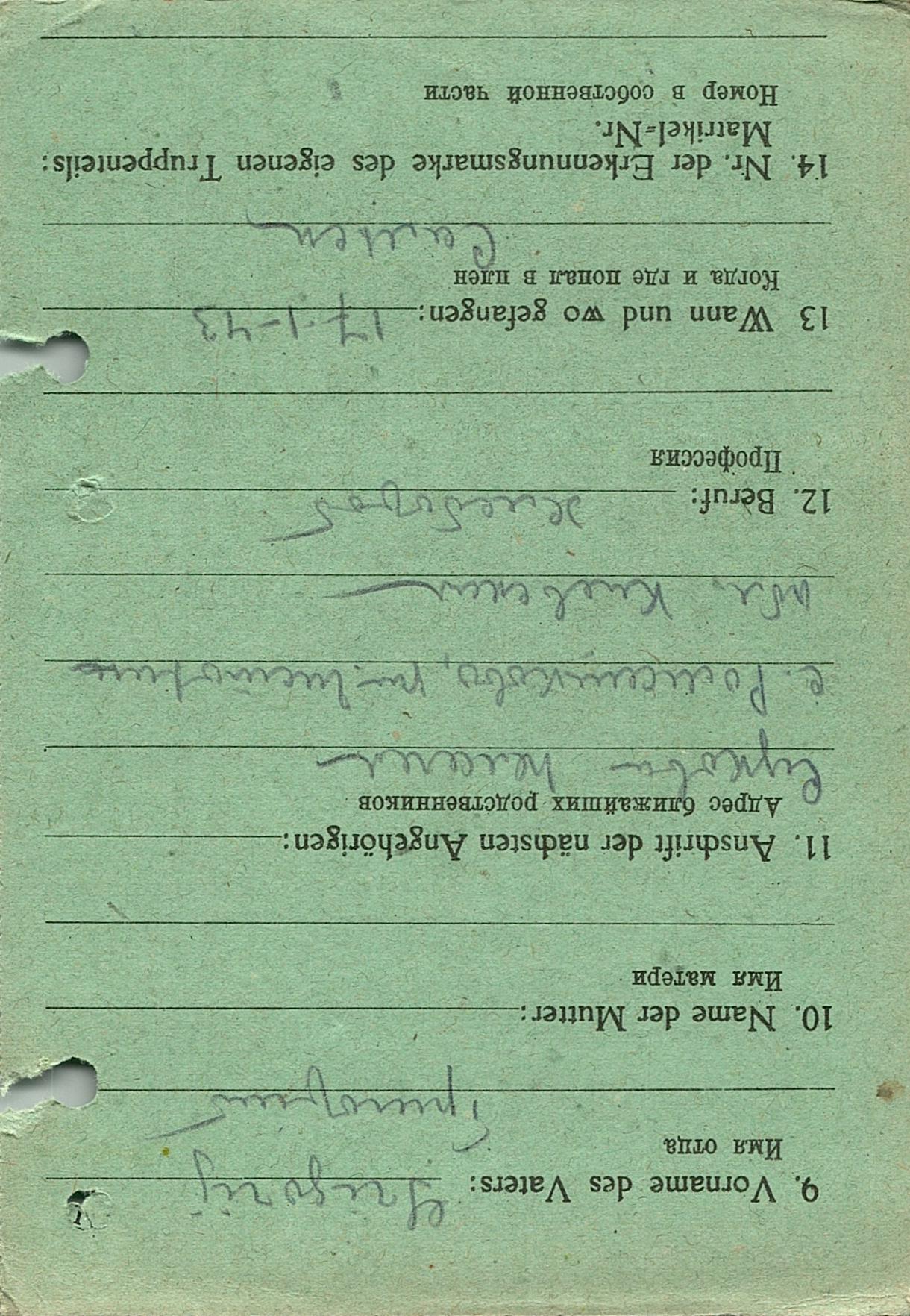 Военнопленные, трофейные карточки. Киевская обл.
