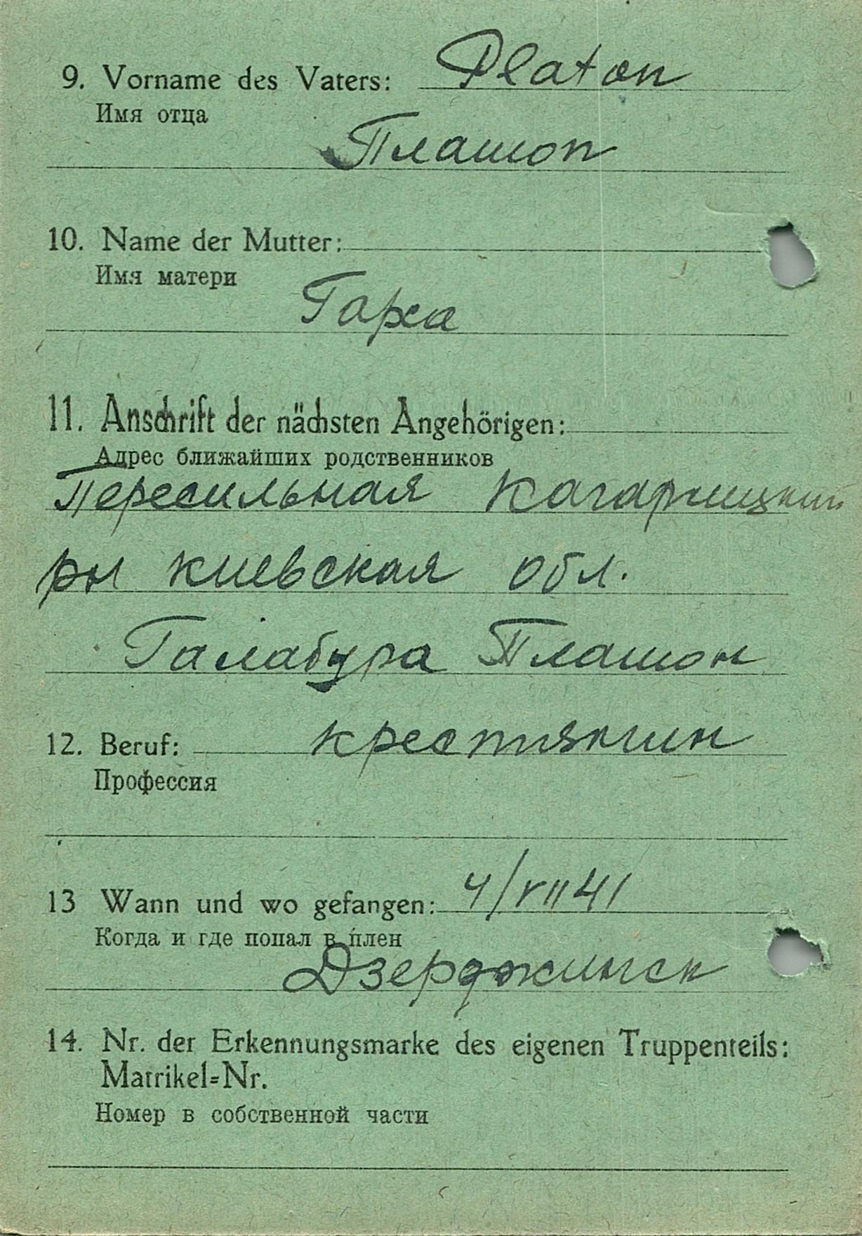 Военнопленные, трофейные карточки. Киевская обл.