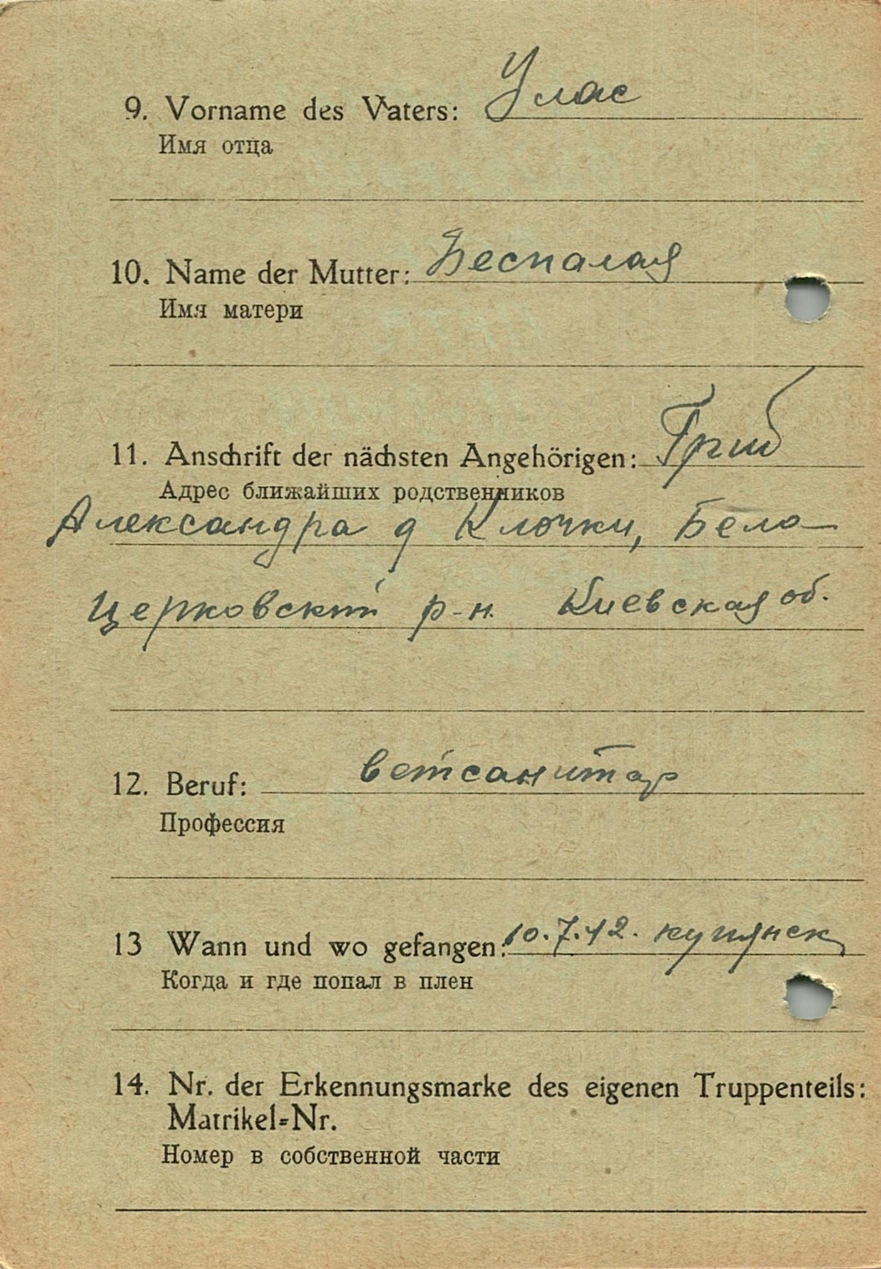 Военнопленные, трофейные карточки. Киевская обл.