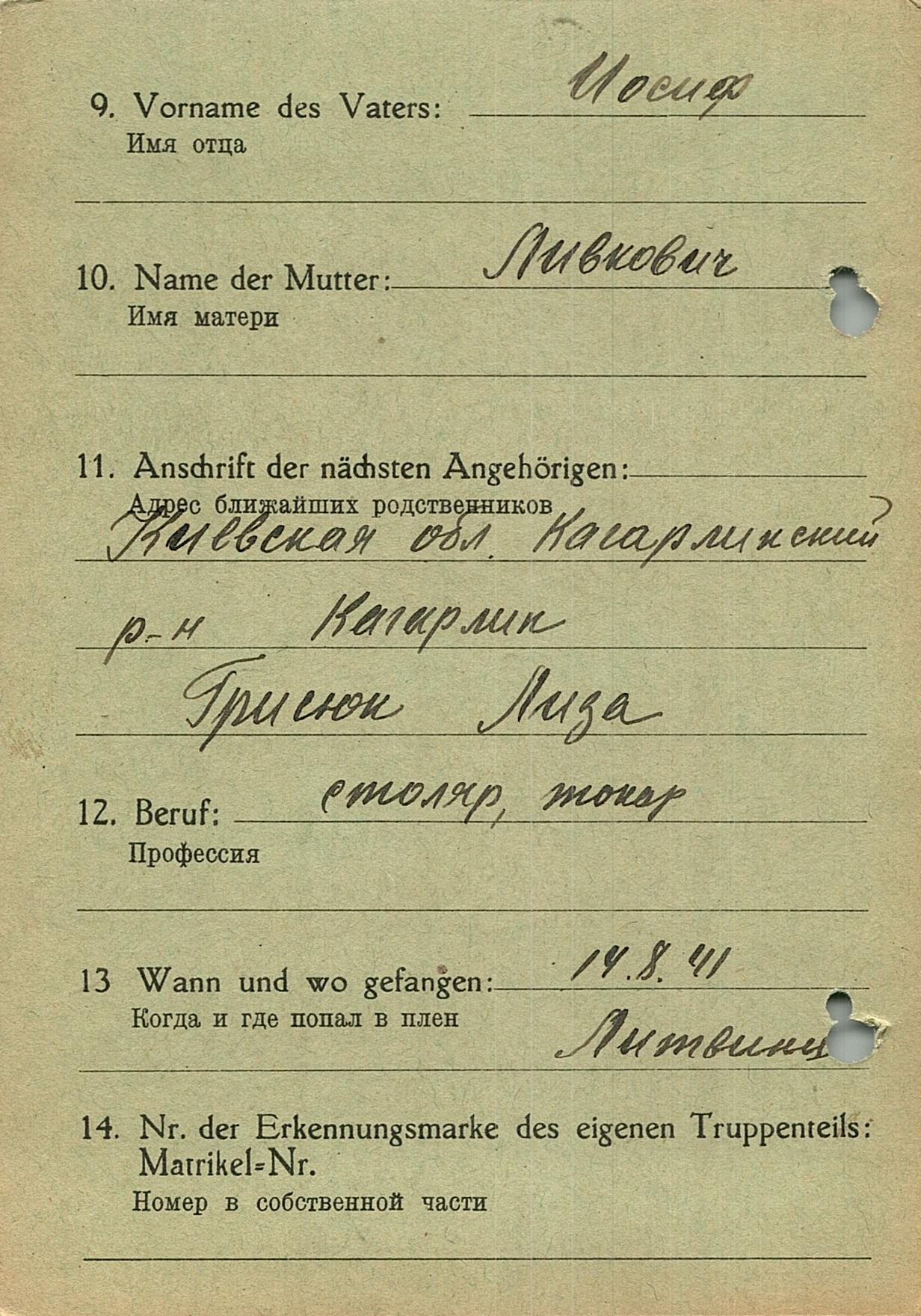 Военнопленные, трофейные карточки. Киевская обл.