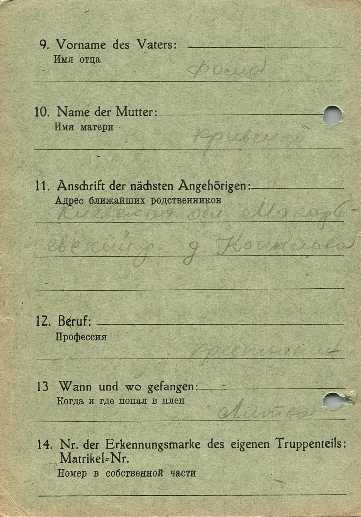 Военнопленные, трофейные карточки. Киевская обл.