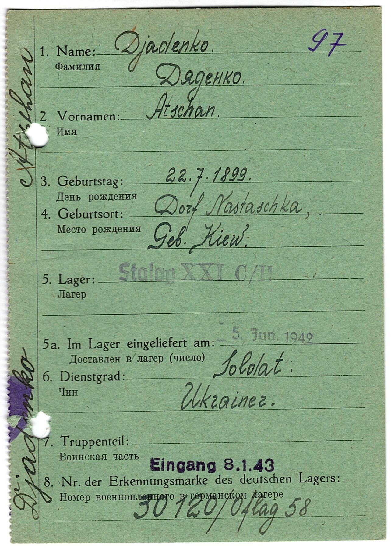 Военнопленные, трофейные карточки. Киевская обл.