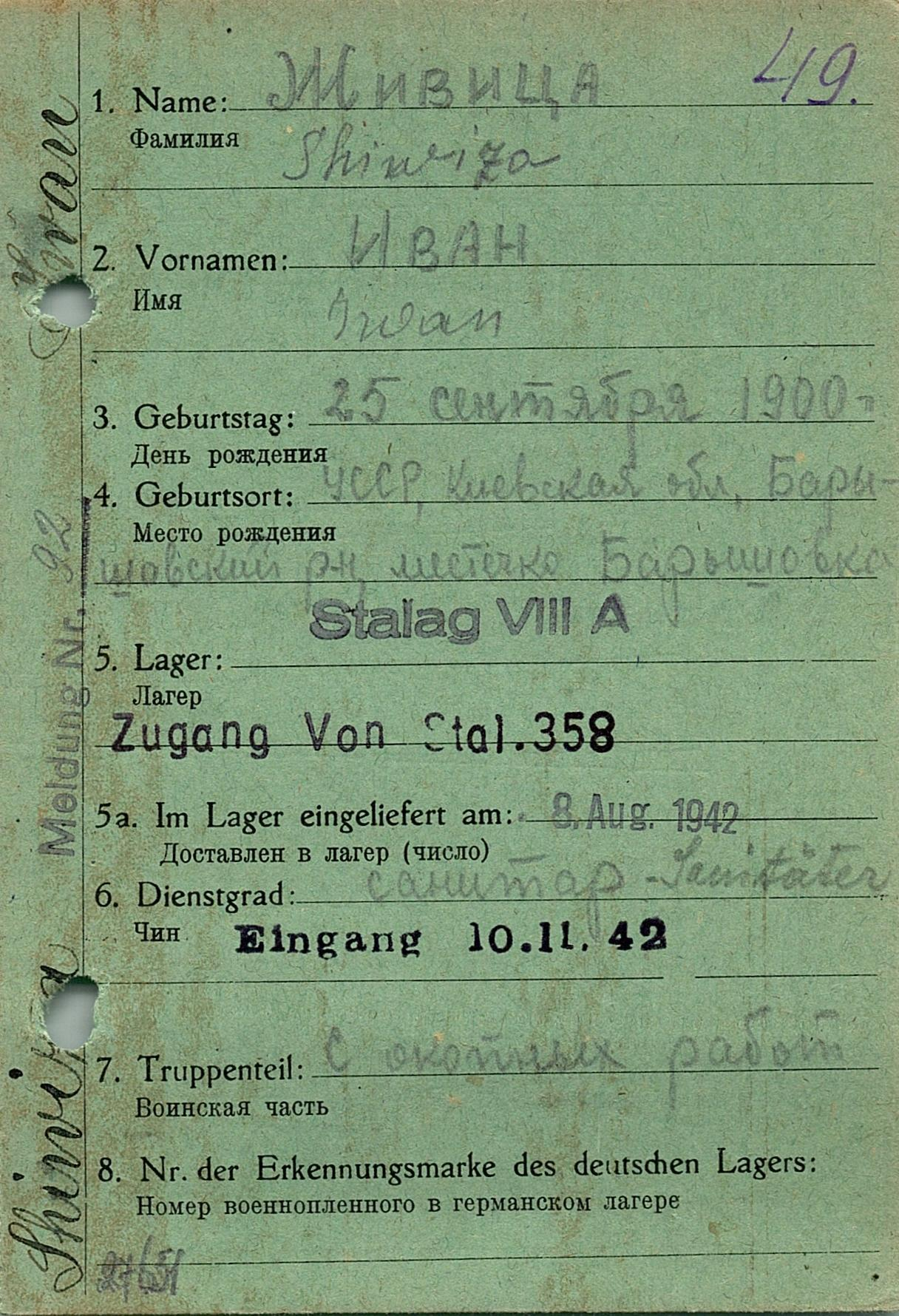 Военнопленные, трофейные карточки. Киевская обл.