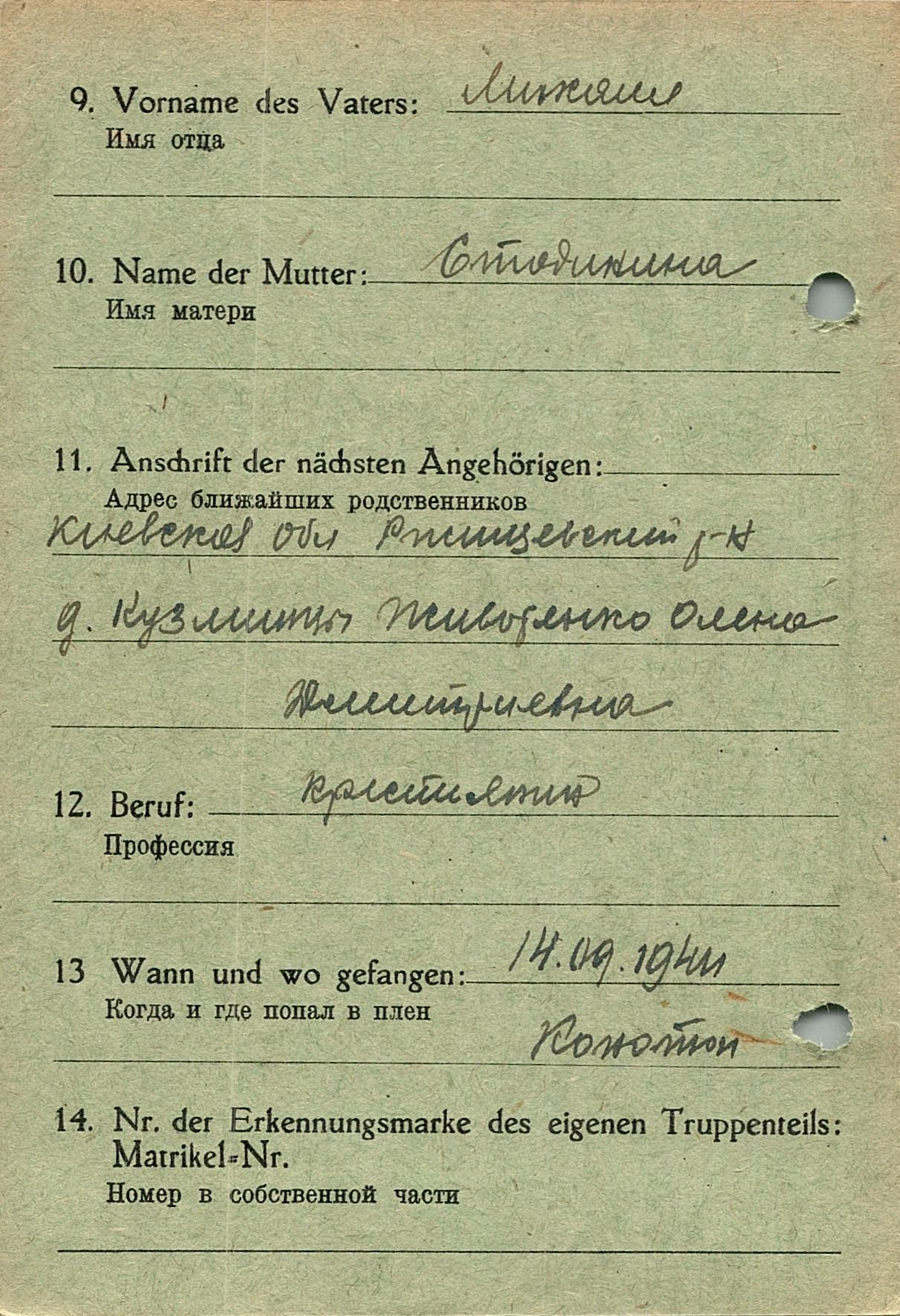 Военнопленные, трофейные карточки. Киевская обл.