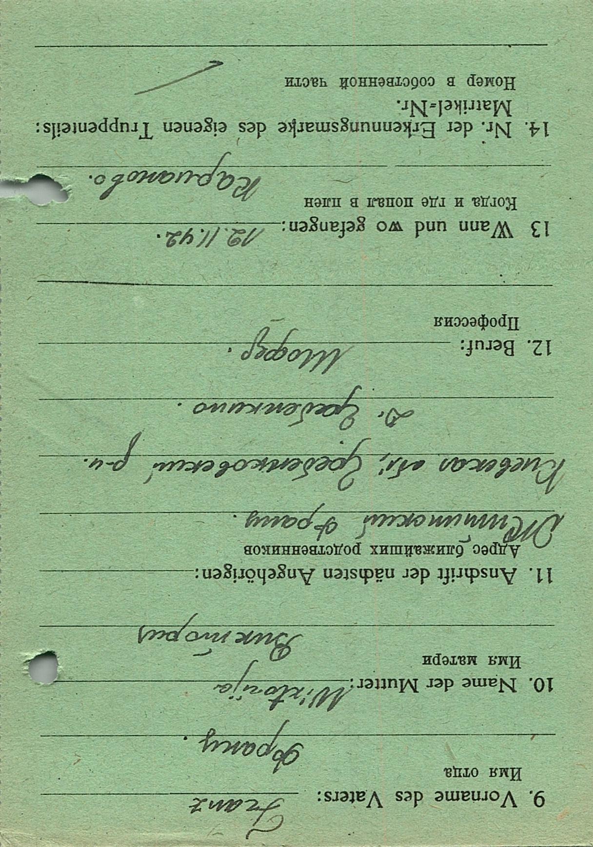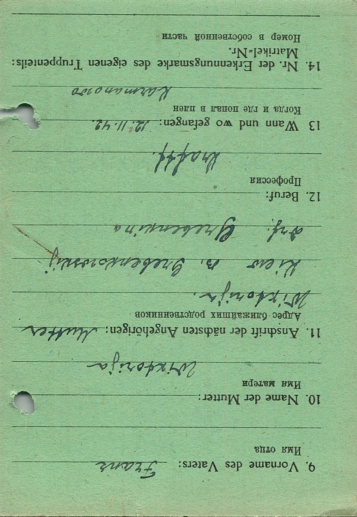 Военнопленные, трофейные карточки. Киевская обл.