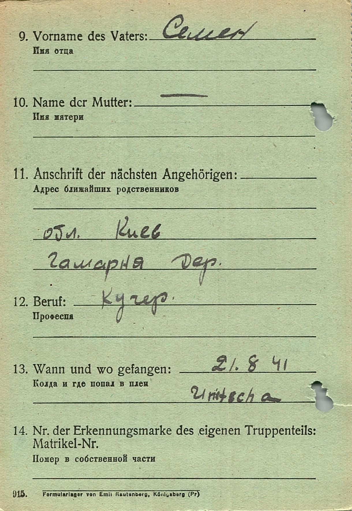 Военнопленные, трофейные карточки. Киевская обл.