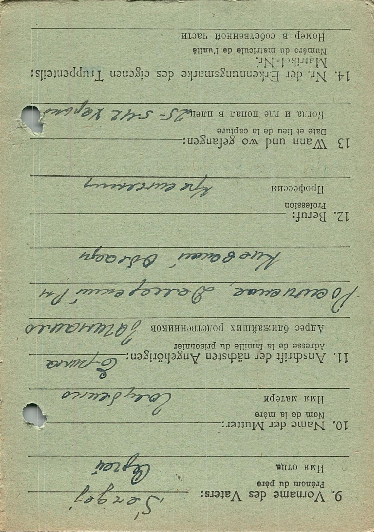 Военнопленные, трофейные карточки. Киевская обл.