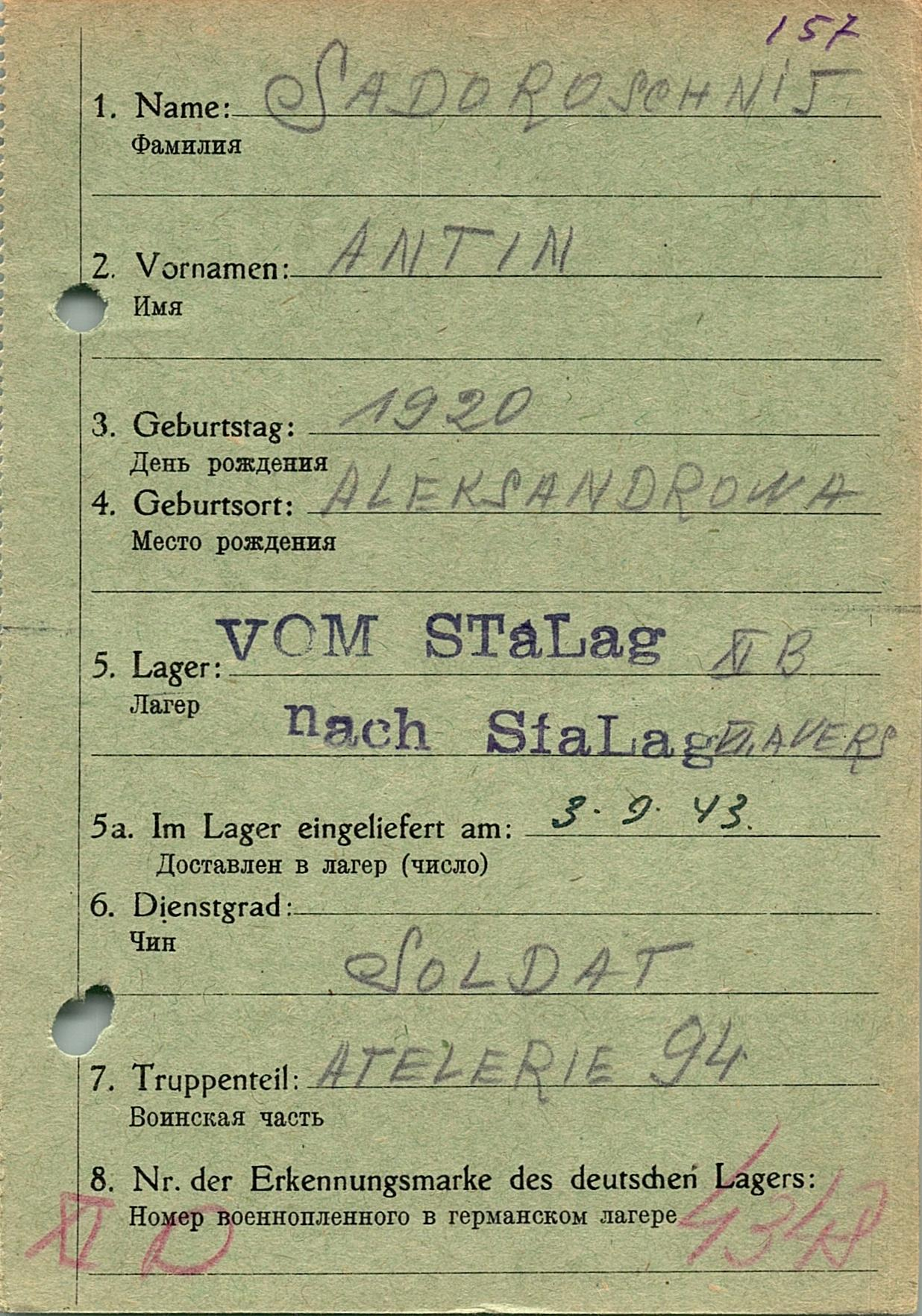 Военнопленные, трофейные карточки. Киевская обл.