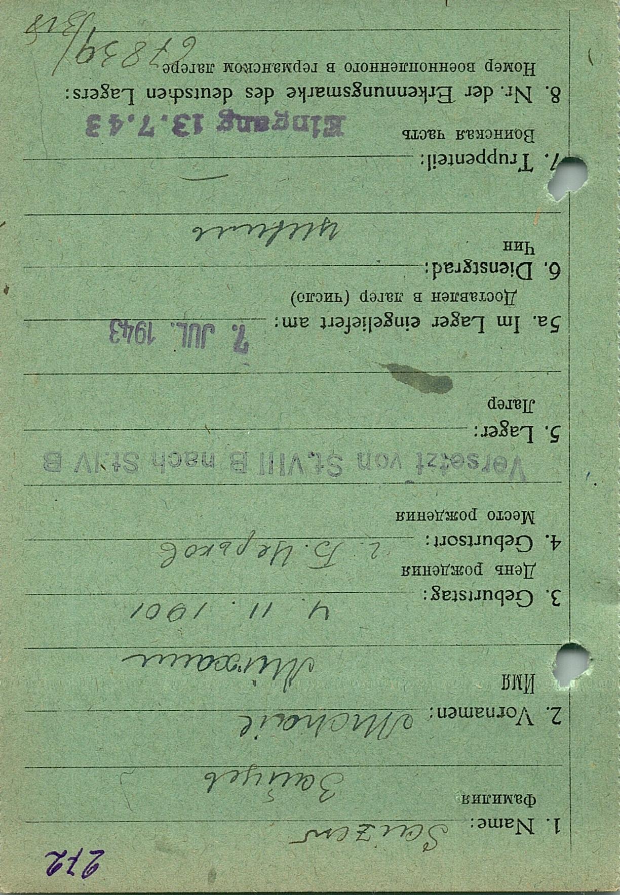 Военнопленные, трофейные карточки. Киевская обл.
