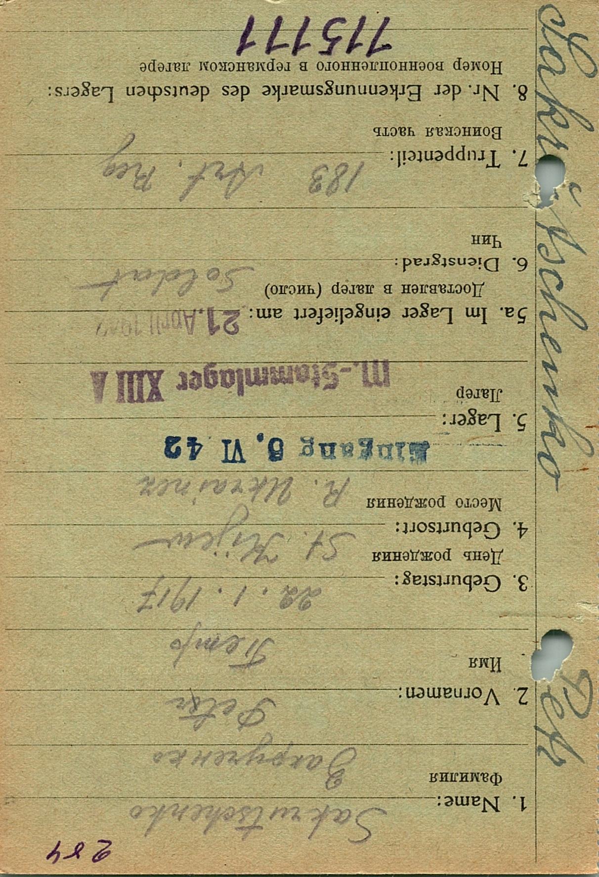 Военнопленные, трофейные карточки. Киевская обл.