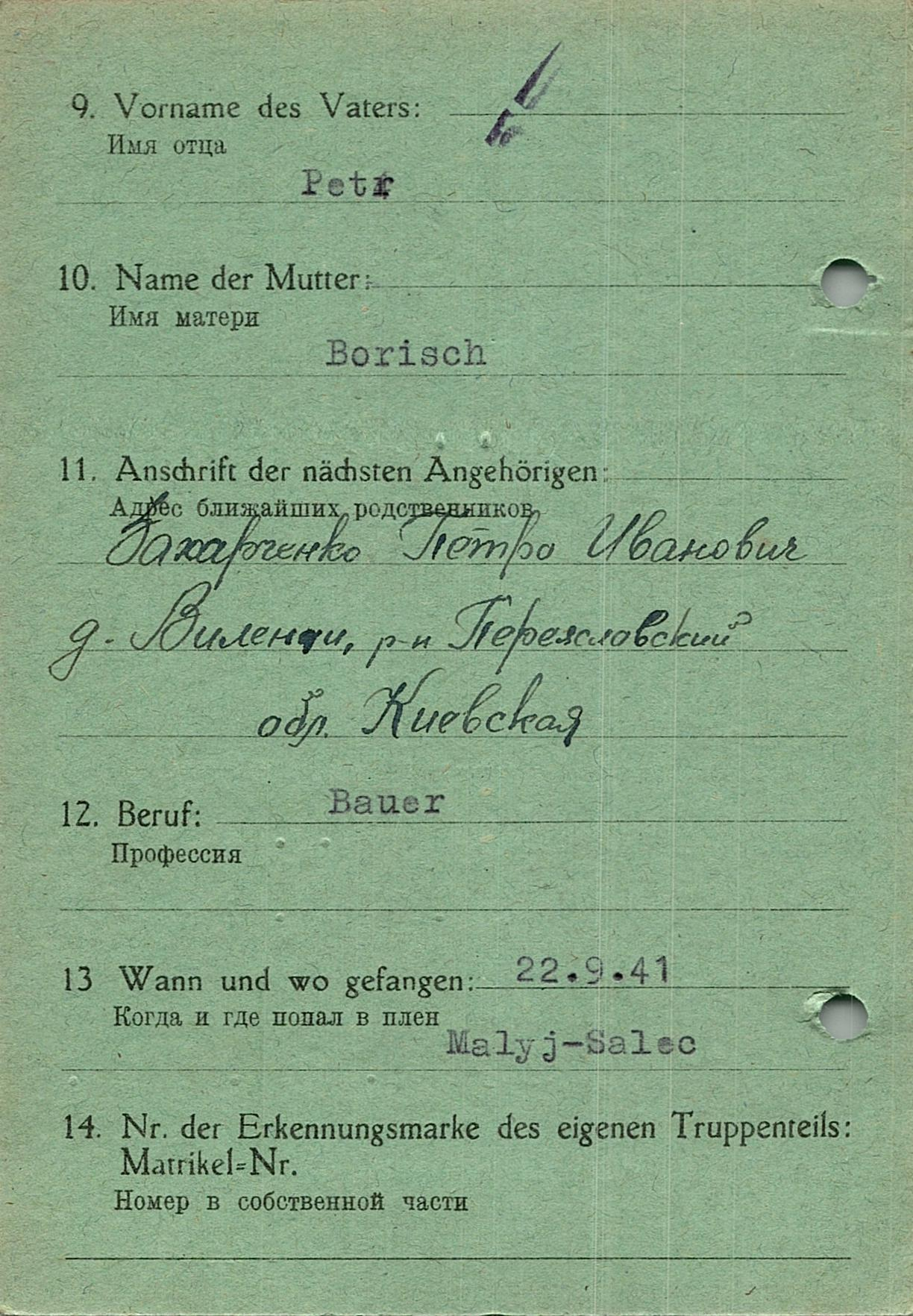 Военнопленные, трофейные карточки. Киевская обл.