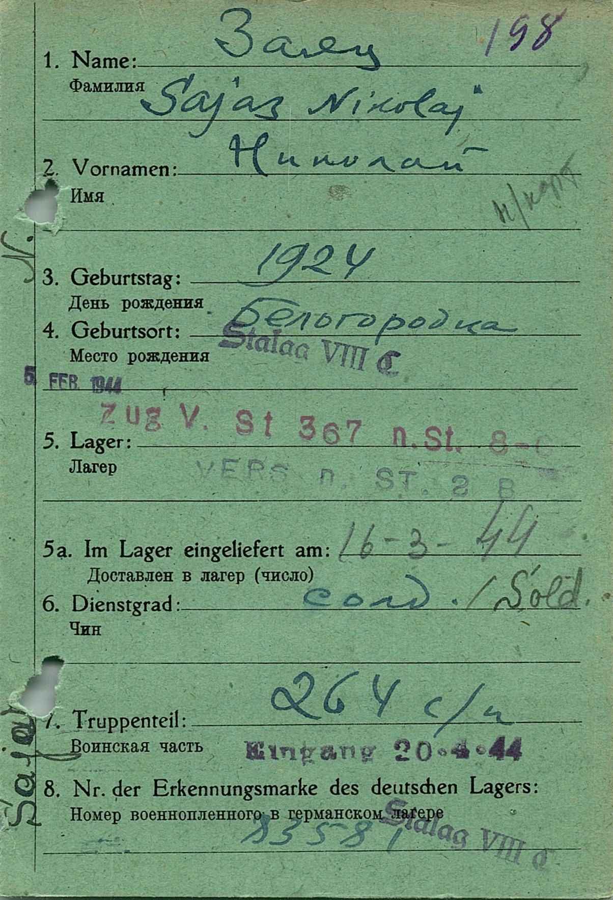 Военнопленные, трофейные карточки. Киевская обл.