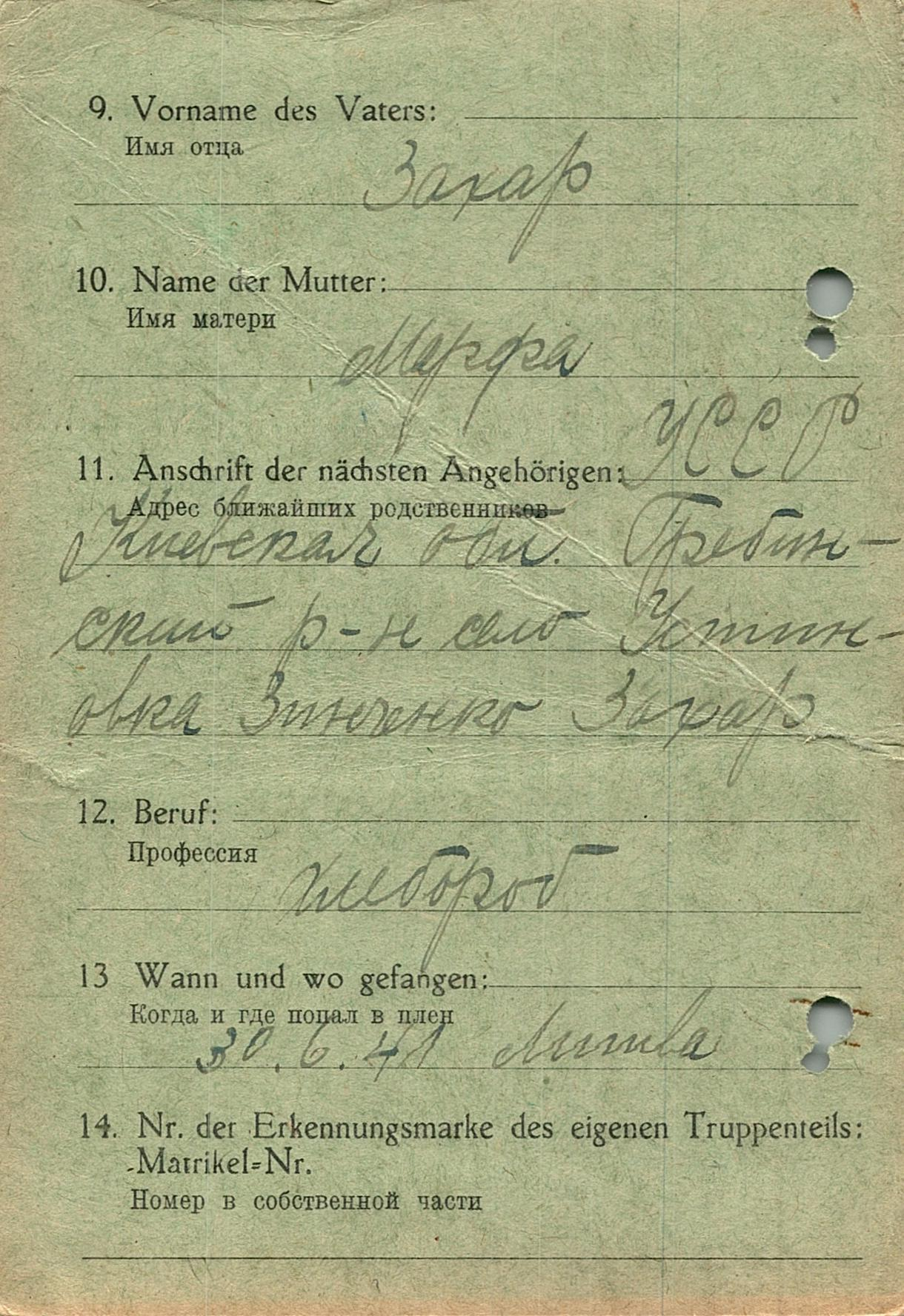 Военнопленные, трофейные карточки. Киевская обл.