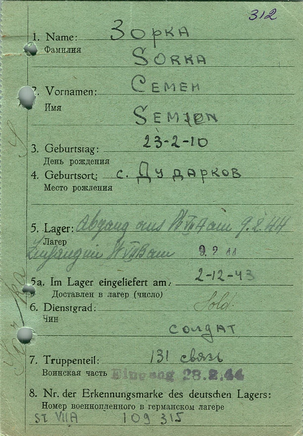 Военнопленные, трофейные карточки. Киевская обл.