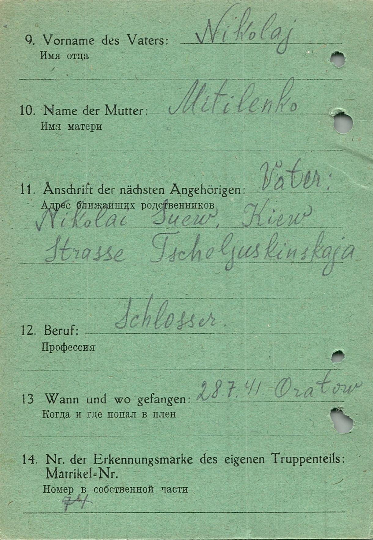 Военнопленные, трофейные карточки. Киевская обл.