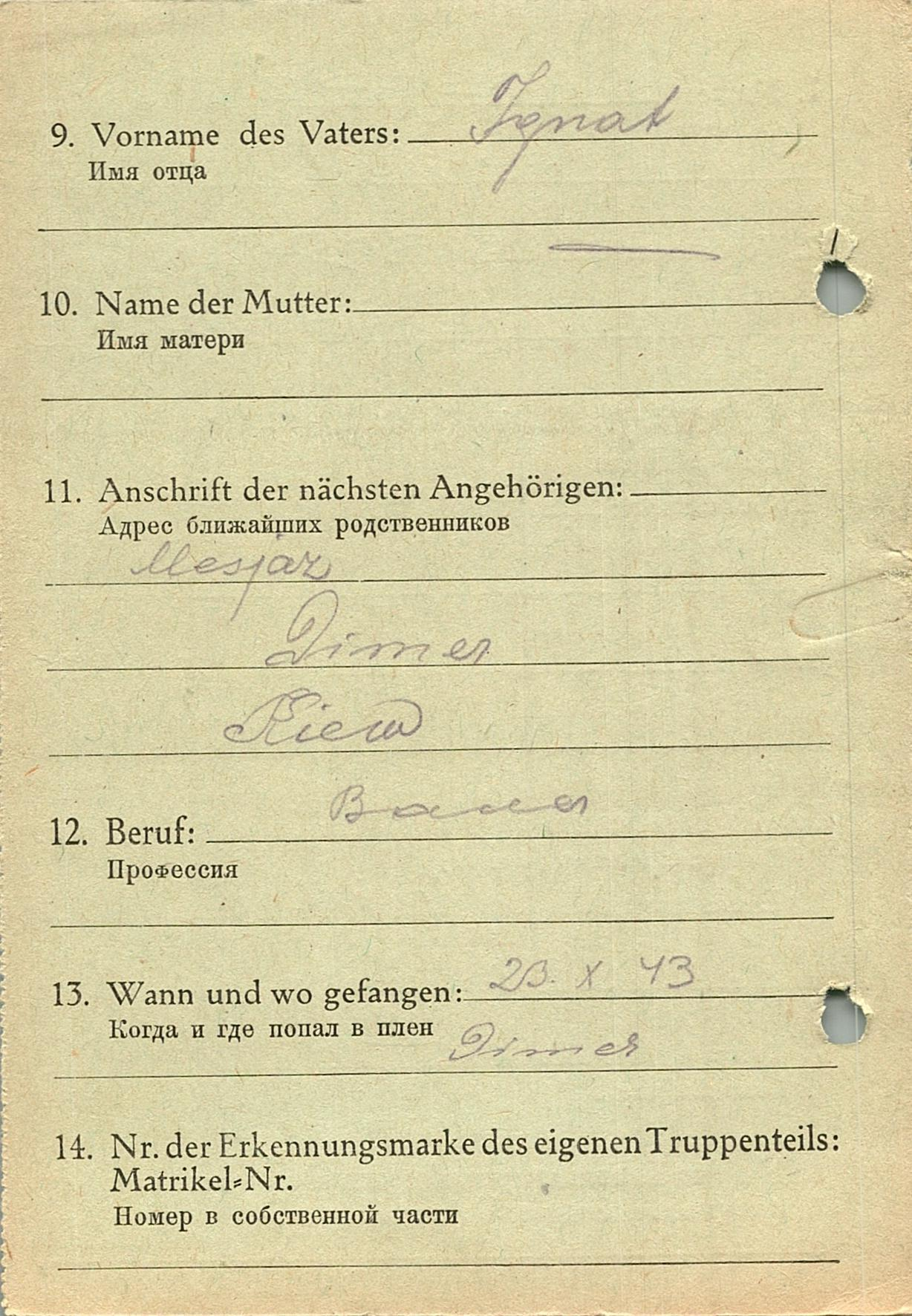 Военнопленные, трофейные карточки. Киевская обл.