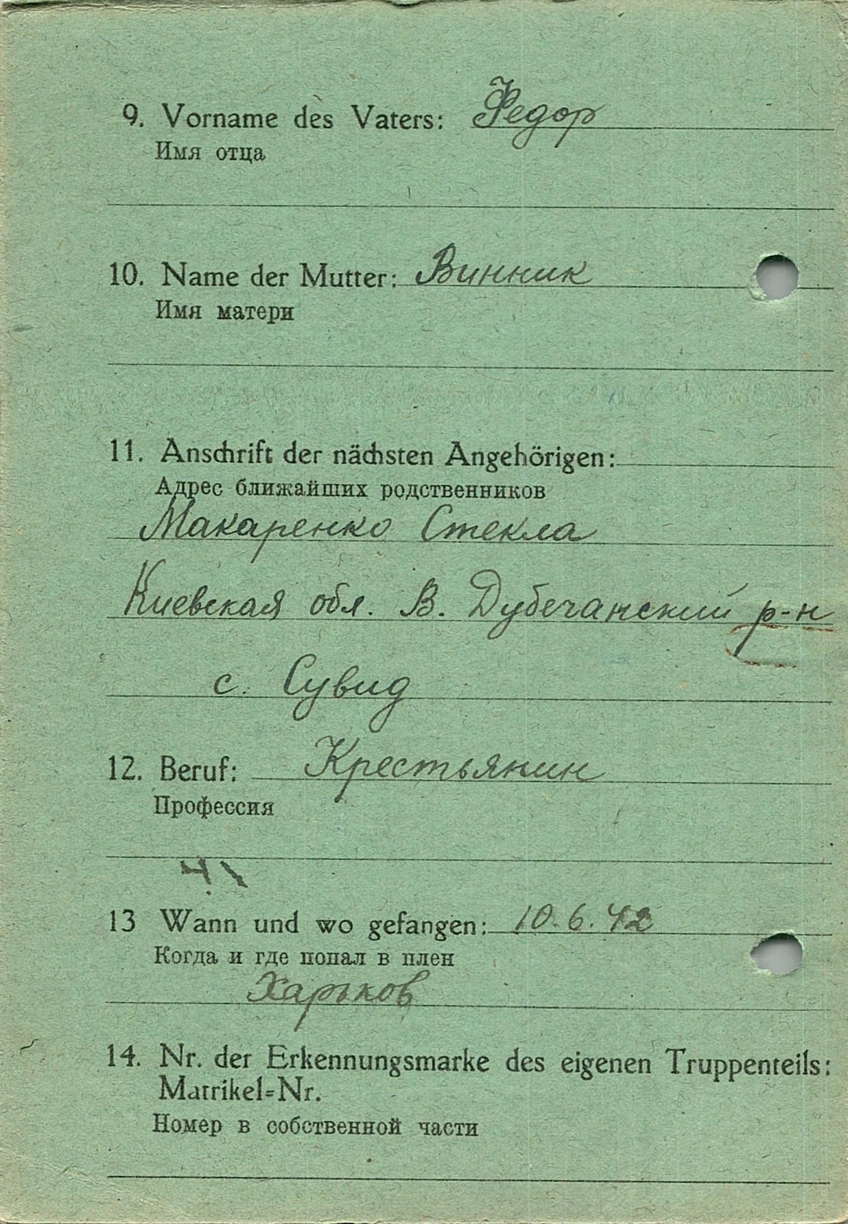 Военнопленные, трофейные карточки. Киевская обл.