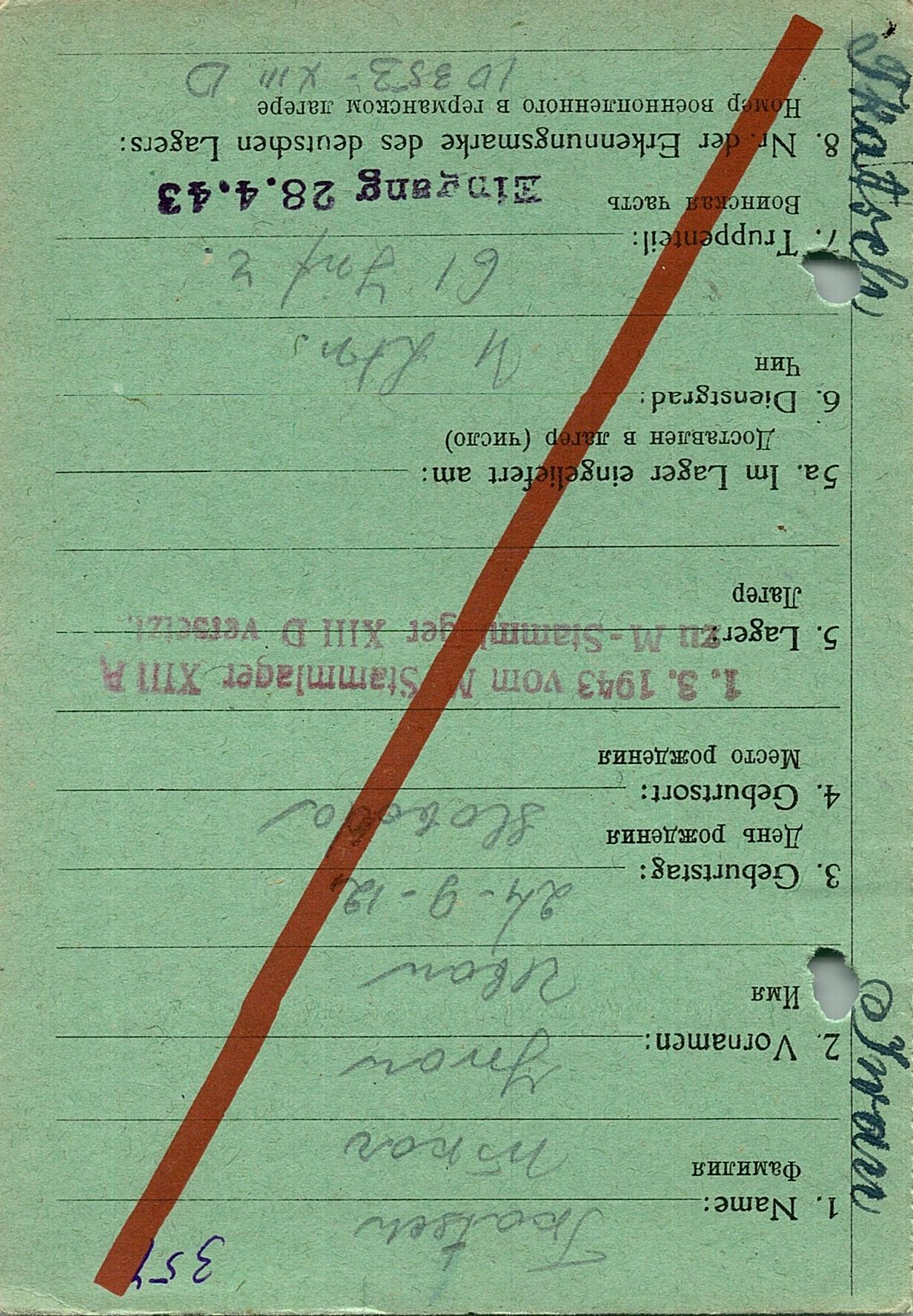 Военнопленные, трофейные карточки. Киевская обл.