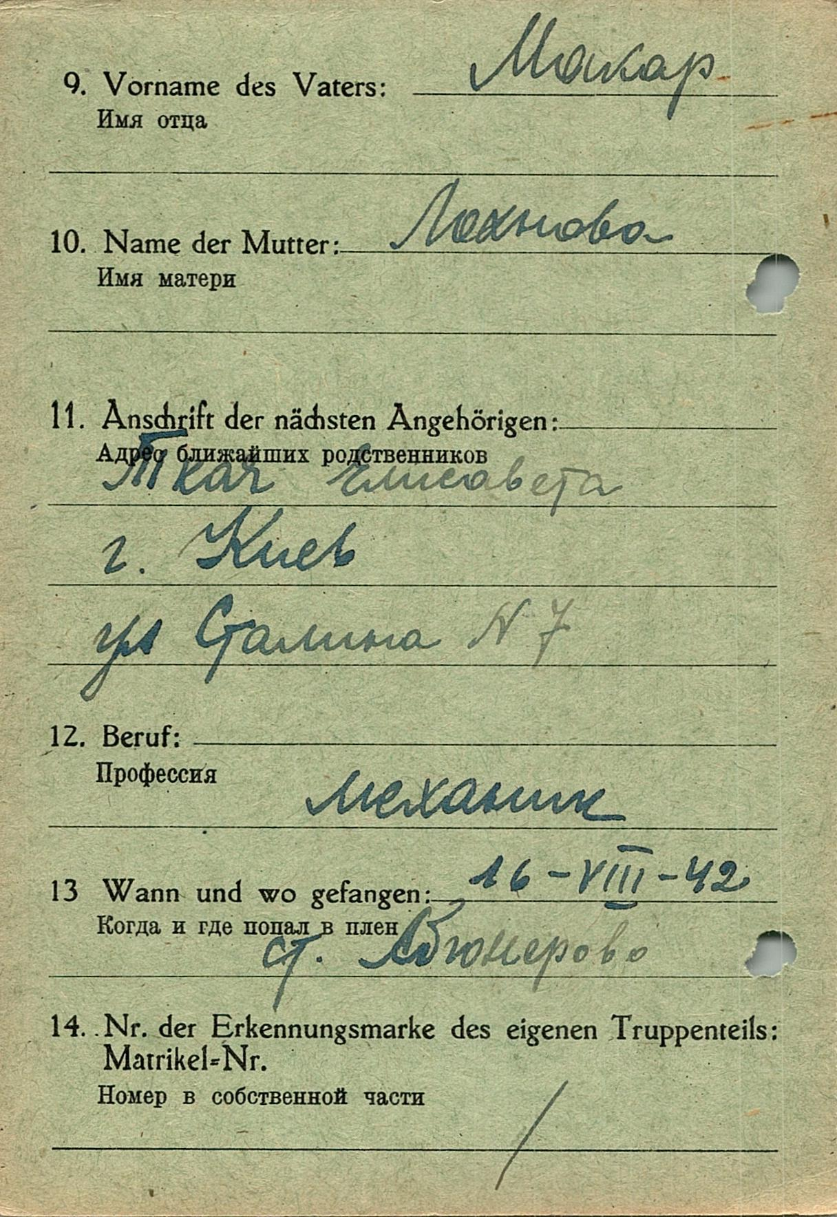 Военнопленные, трофейные карточки. Киевская обл.