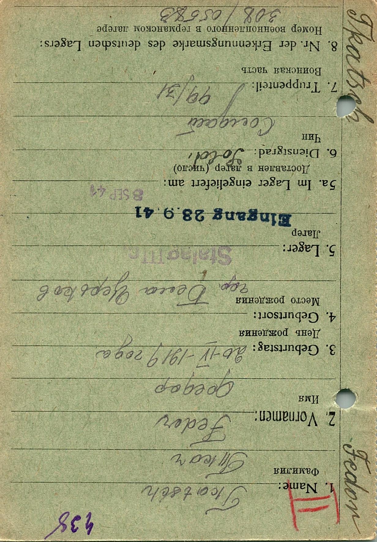 Военнопленные, трофейные карточки. Киевская обл.