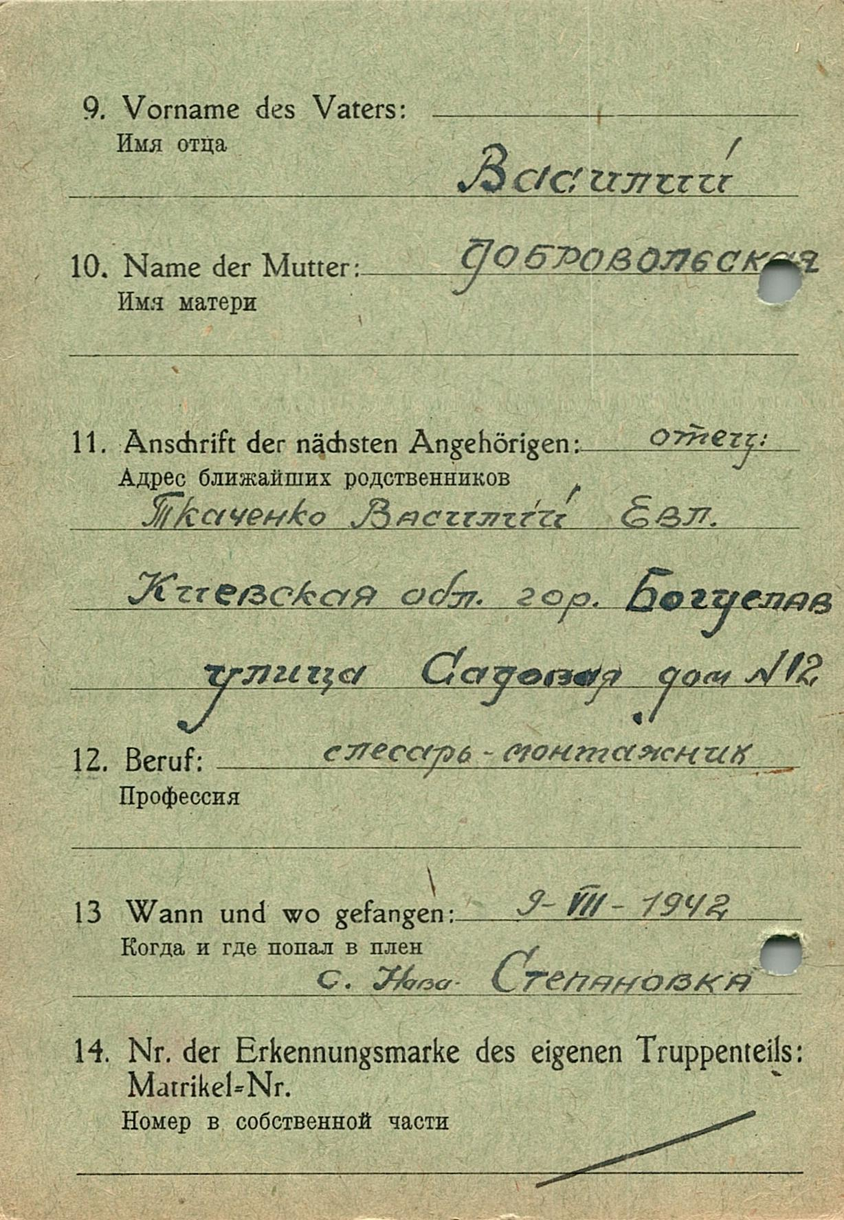 Военнопленные, трофейные карточки. Киевская обл.