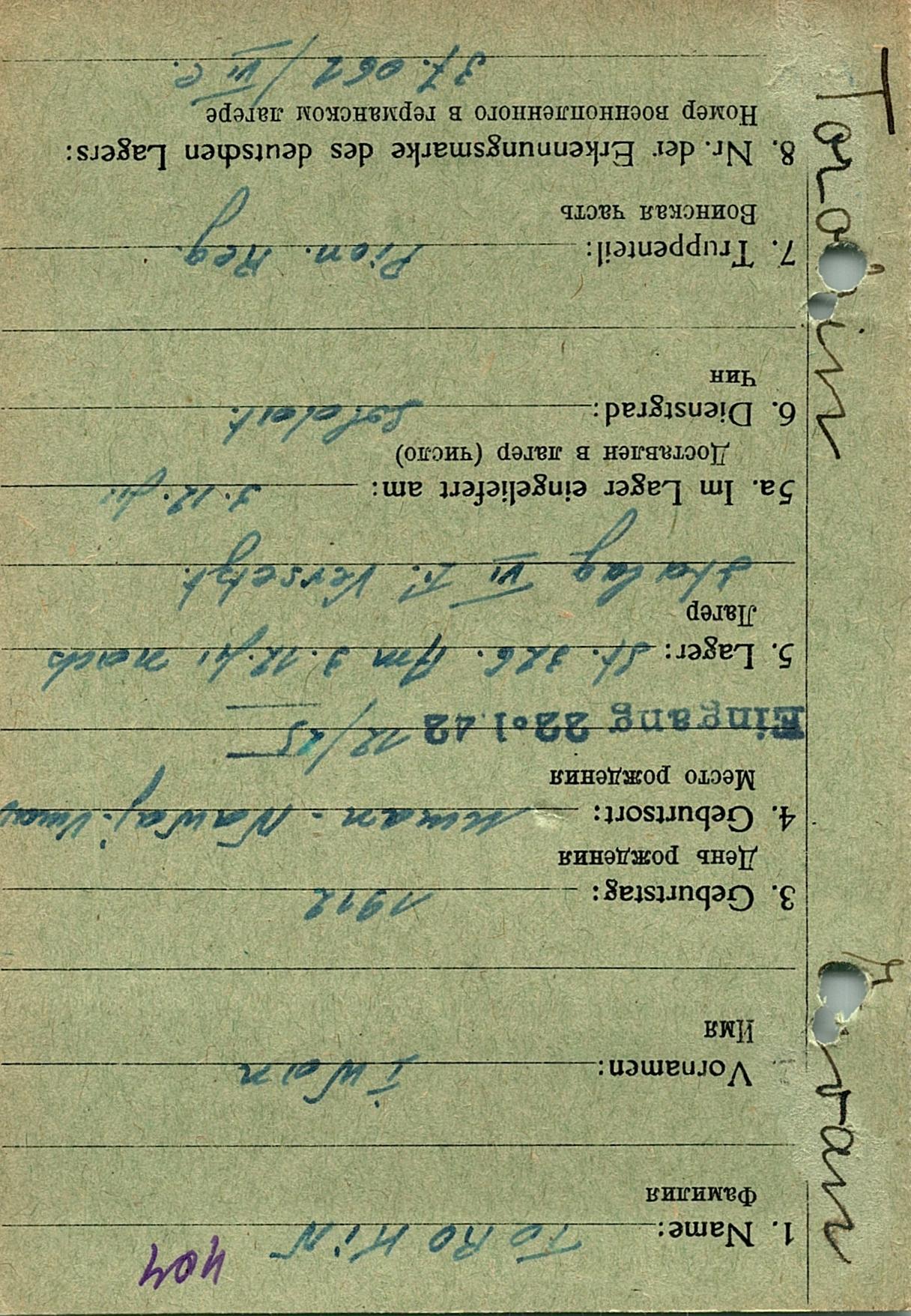Военнопленные, трофейные карточки. Киевская обл.