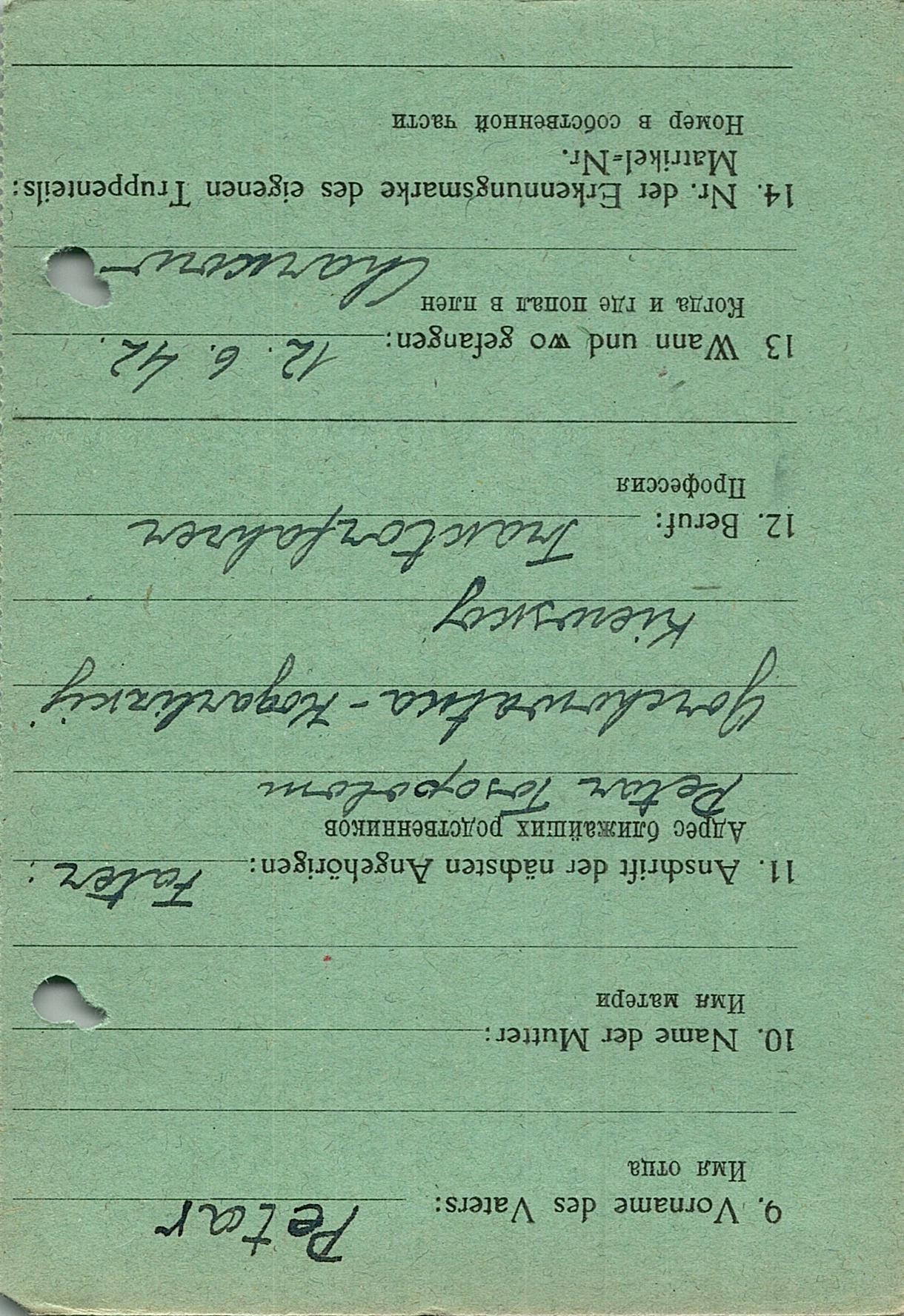 Военнопленные, трофейные карточки. Киевская обл.