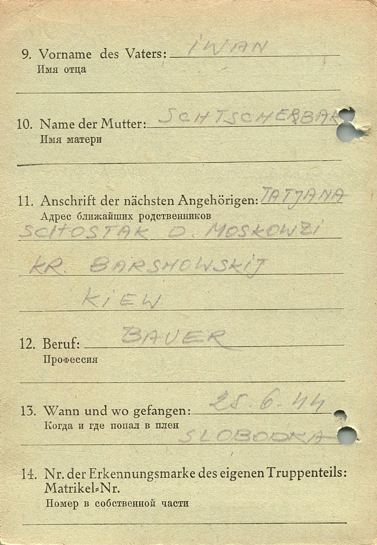 Военнопленные, трофейные карточки. Киевская обл.