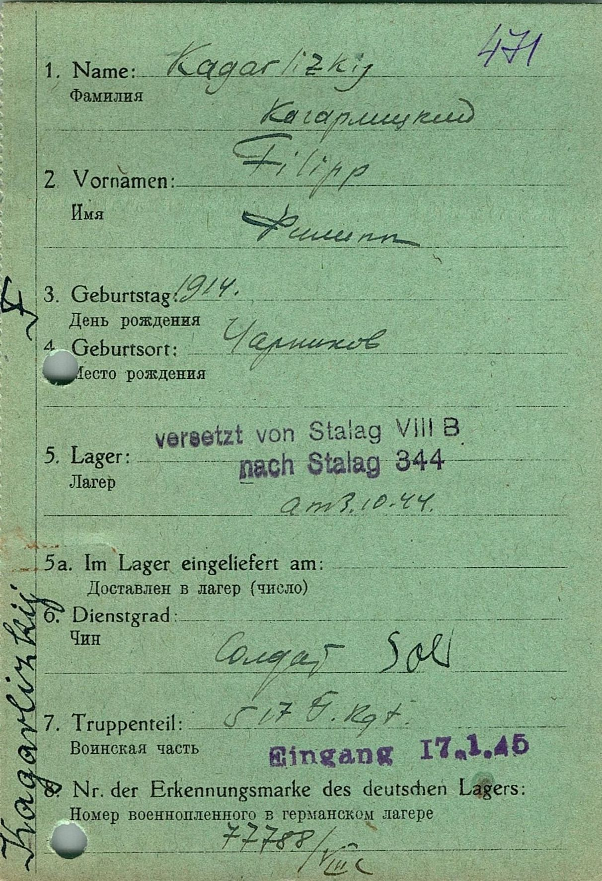 Военнопленные, трофейные карточки. Киевская обл.